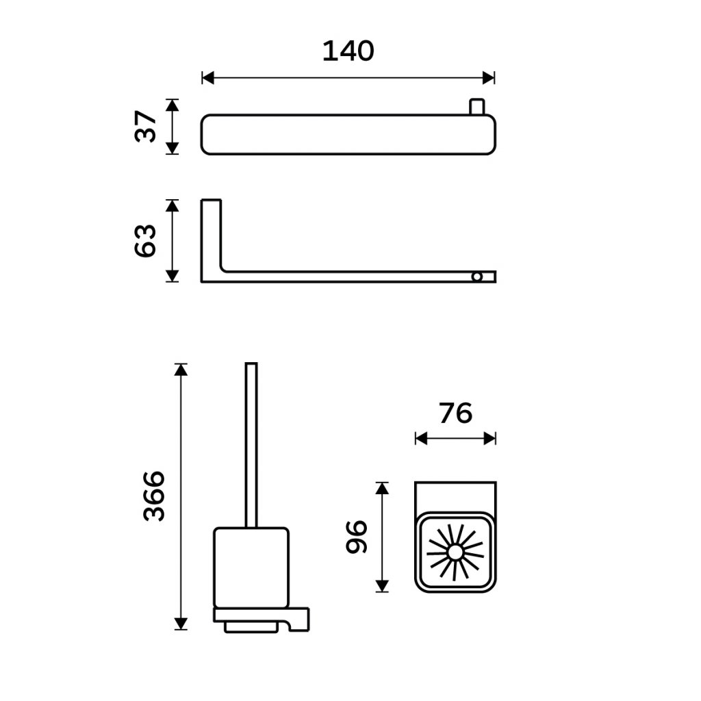 Nástěnný držák s keramickou nádobkou. Rukojeť kartáče chrom, černý kartáč. 1 ks.