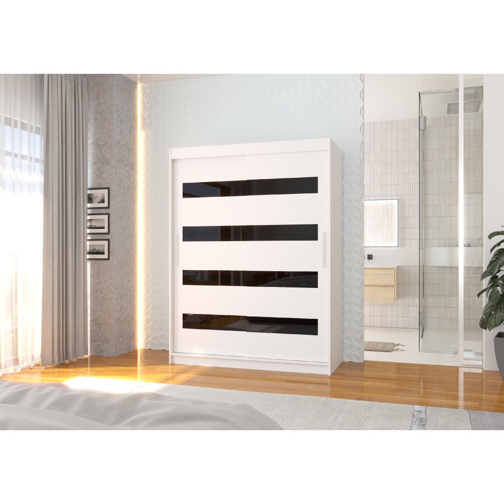 Šatní skříň posuvná MARTINEZ W-BL 150, bílá/černý Lacobel