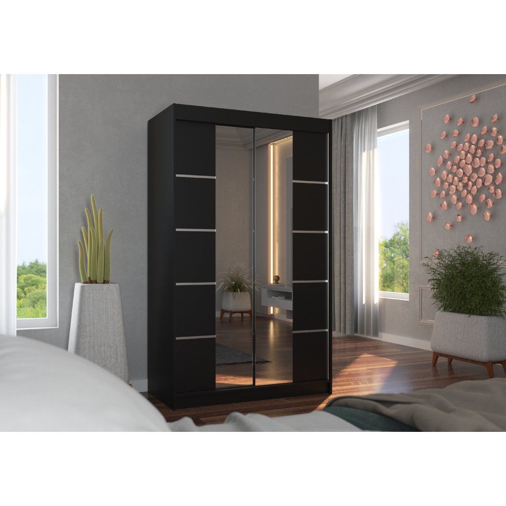 Šatní zrcadlová skříň posuvná GENUA B 120, černá