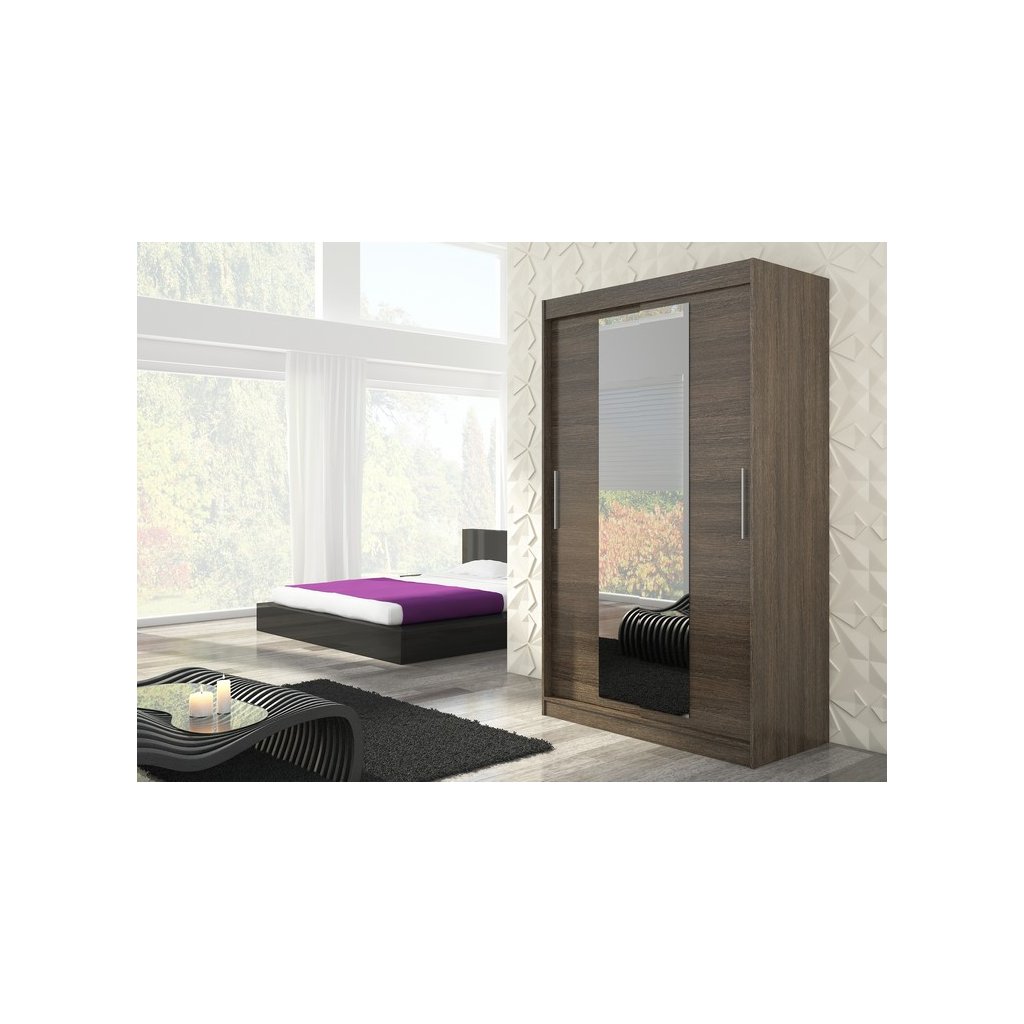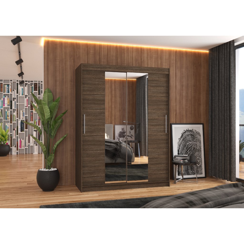 Šatní zrcadlová skříň posuvná INESS CH 150, choco