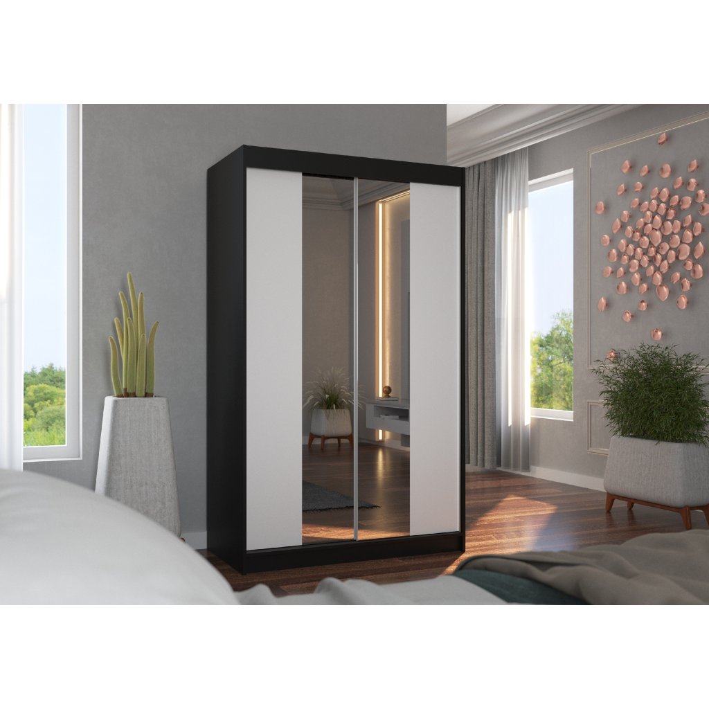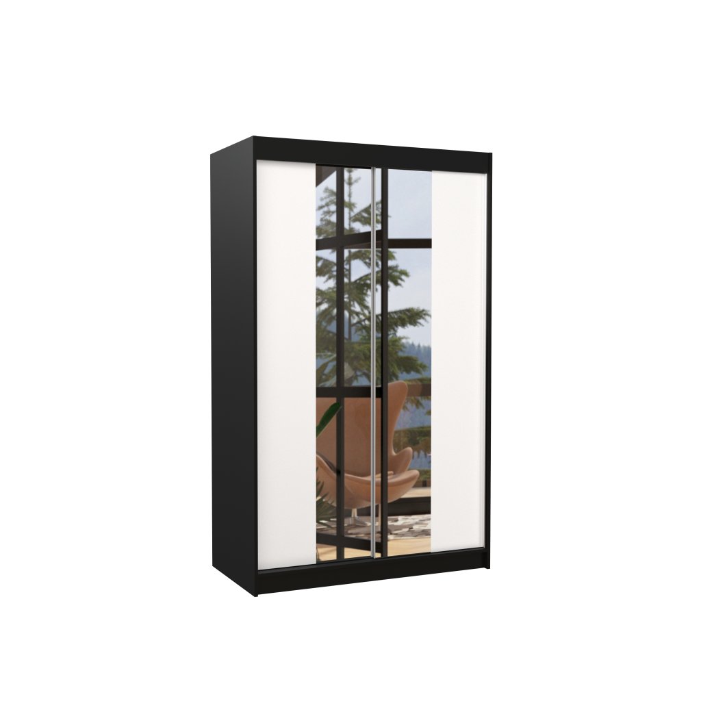 Šatní zrcadlová skříň posuvná MARVIN B-W 120, bílá/černá