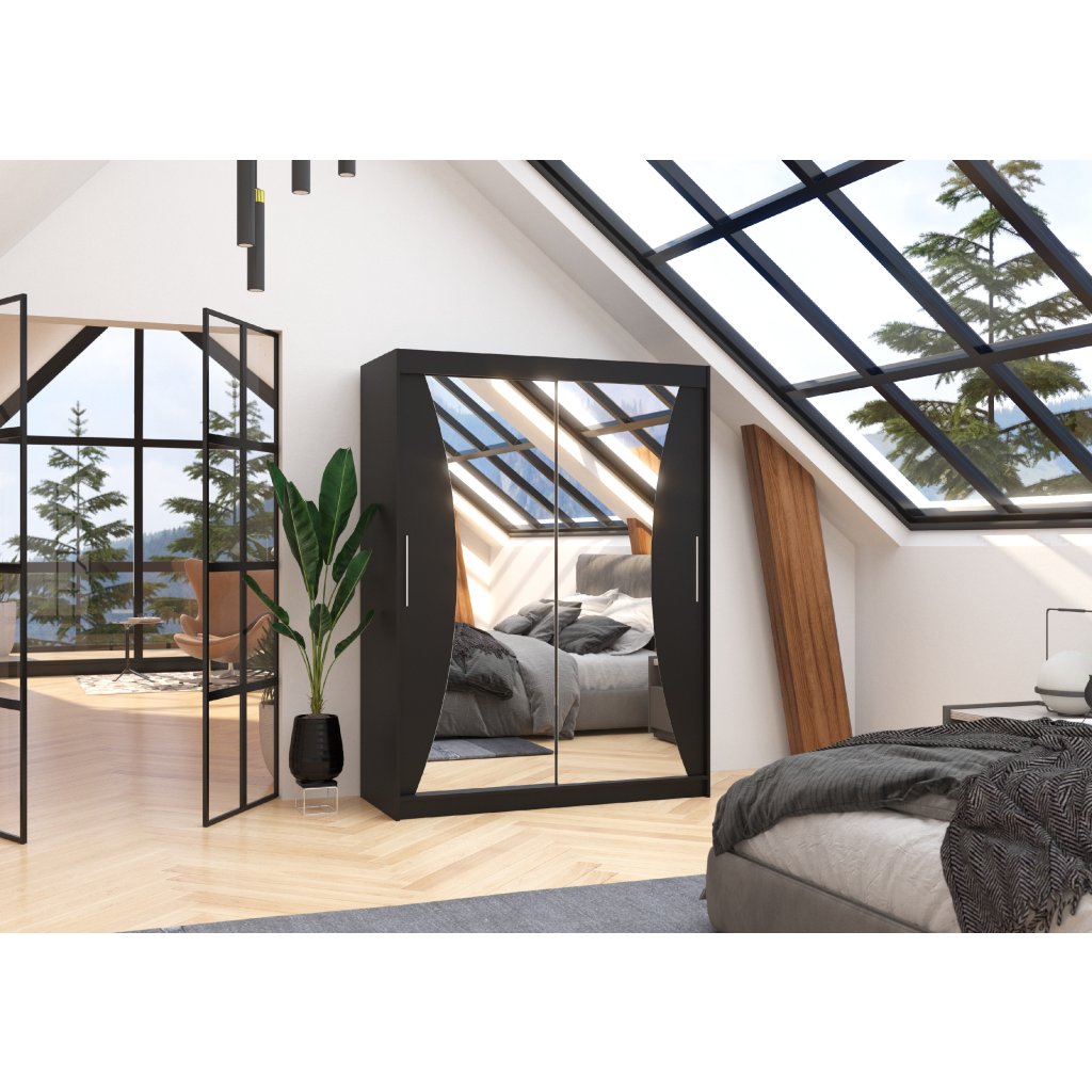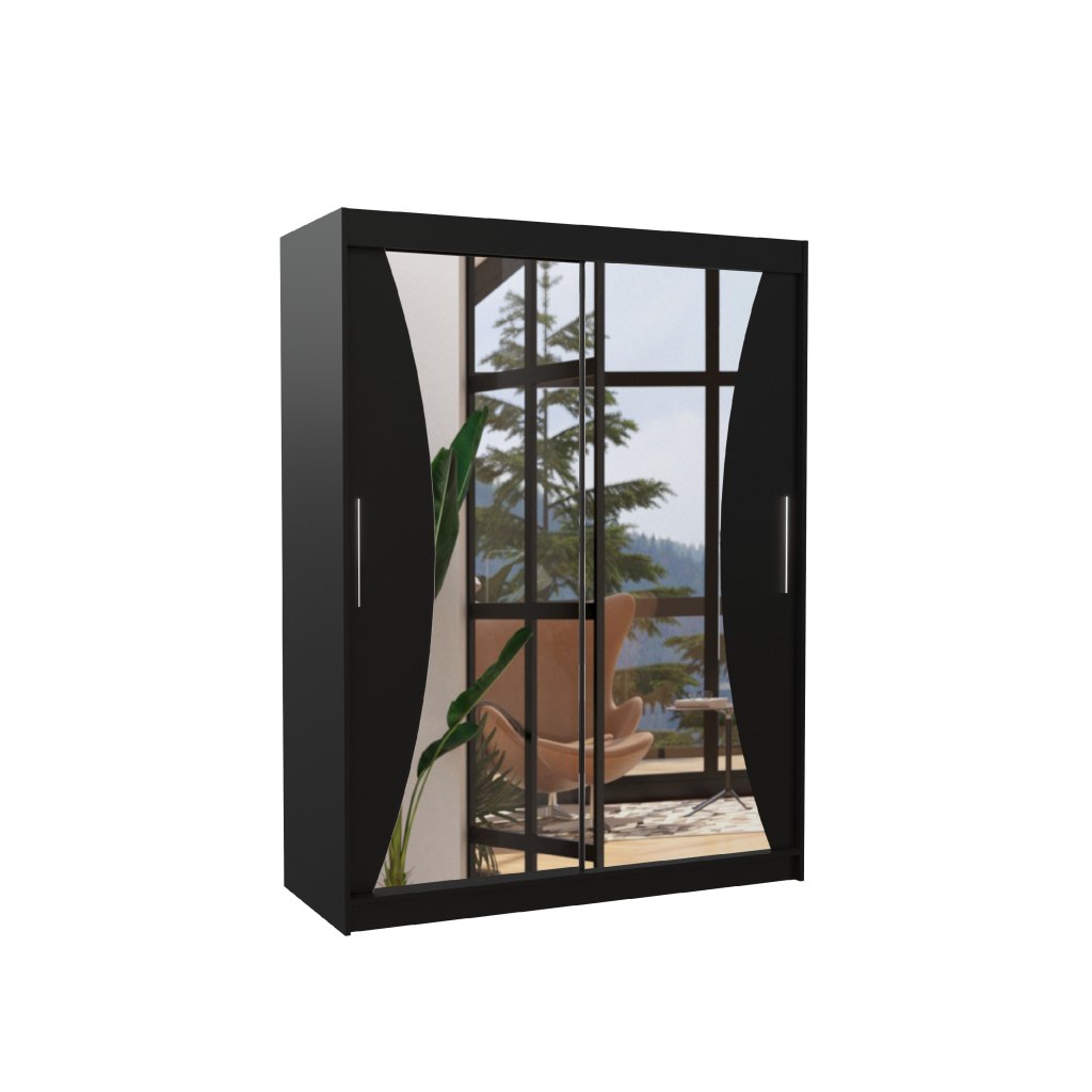 Šatní zrcadlová skříň posuvná MAX B 150, černá