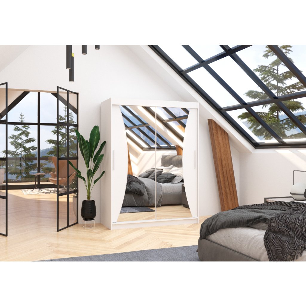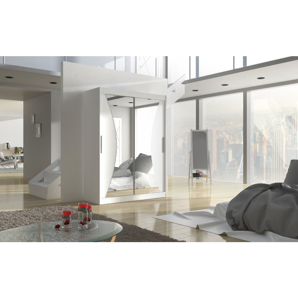 Šatní zrcadlová skříň posuvná MAX W 150, bílá