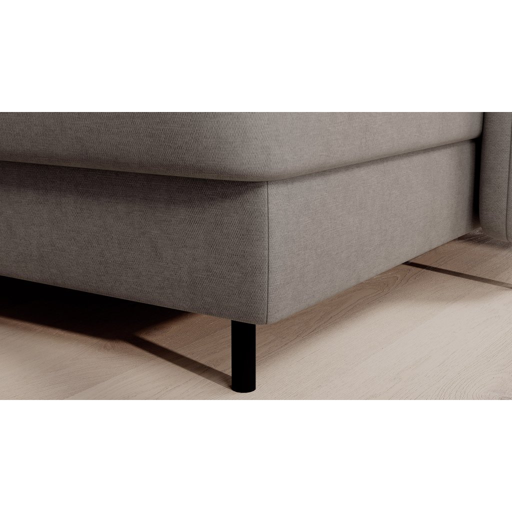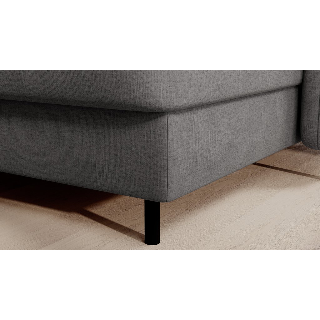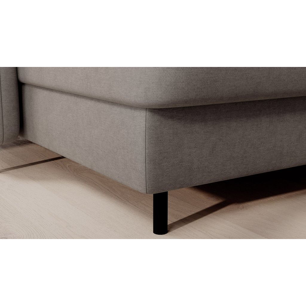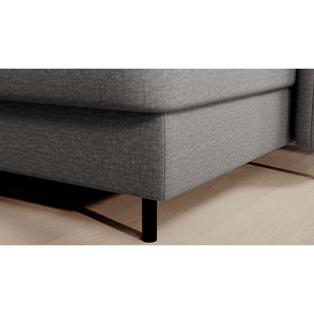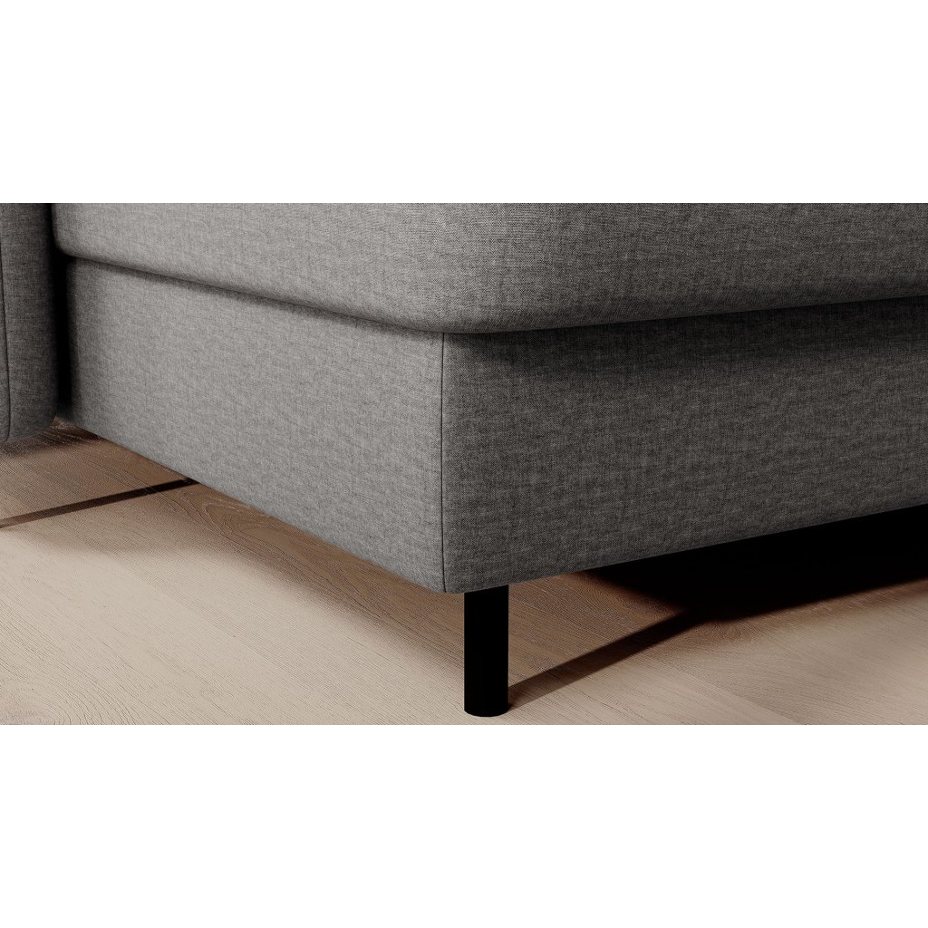 Černé ocelové nohy mu dodávají moderní nádech a elegantní design z něj činí dokonalý designový prvek pro váš obývací pokoj. Rohová sedací souprava Berrto je vybavena snadno použitelným mechanismem Dolphin, který umožňuje rychlou přeměnu na pohodlné lůžko. Je dokonalým řešením, když potřebujete místo na spaní pro hosty.