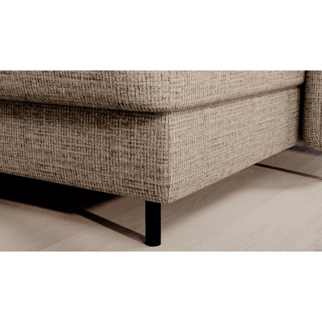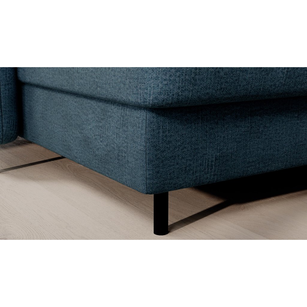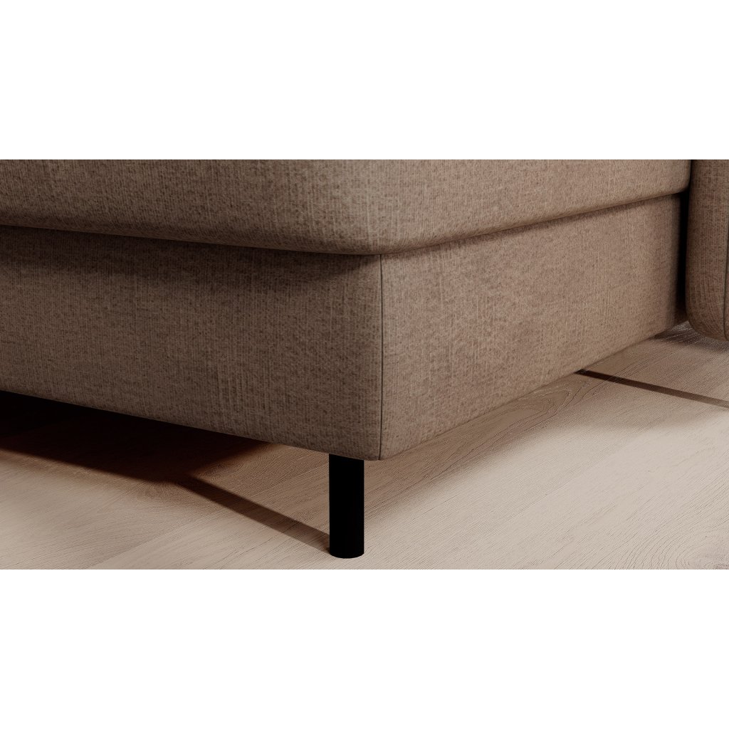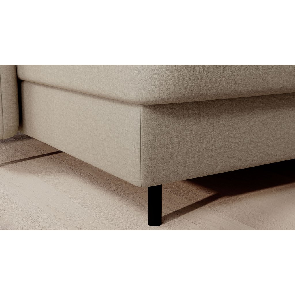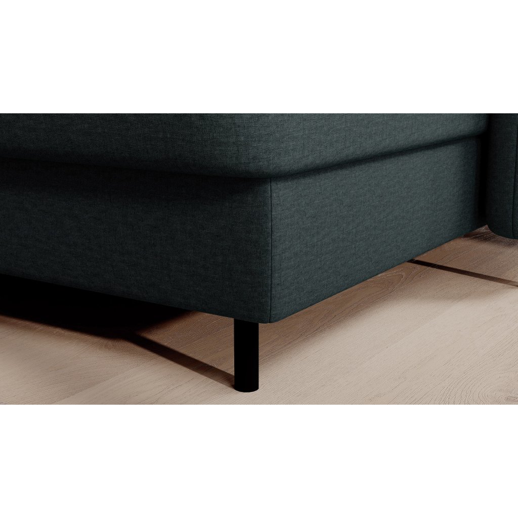 Černé ocelové nohy mu dodávají moderní nádech a elegantní design z něj činí dokonalý designový prvek pro váš obývací pokoj. Rohová sedací souprava Berrto je vybavena snadno použitelným mechanismem Dolphin, který umožňuje rychlou přeměnu na pohodlné lůžko. Je dokonalým řešením, když potřebujete místo na spaní pro hosty.