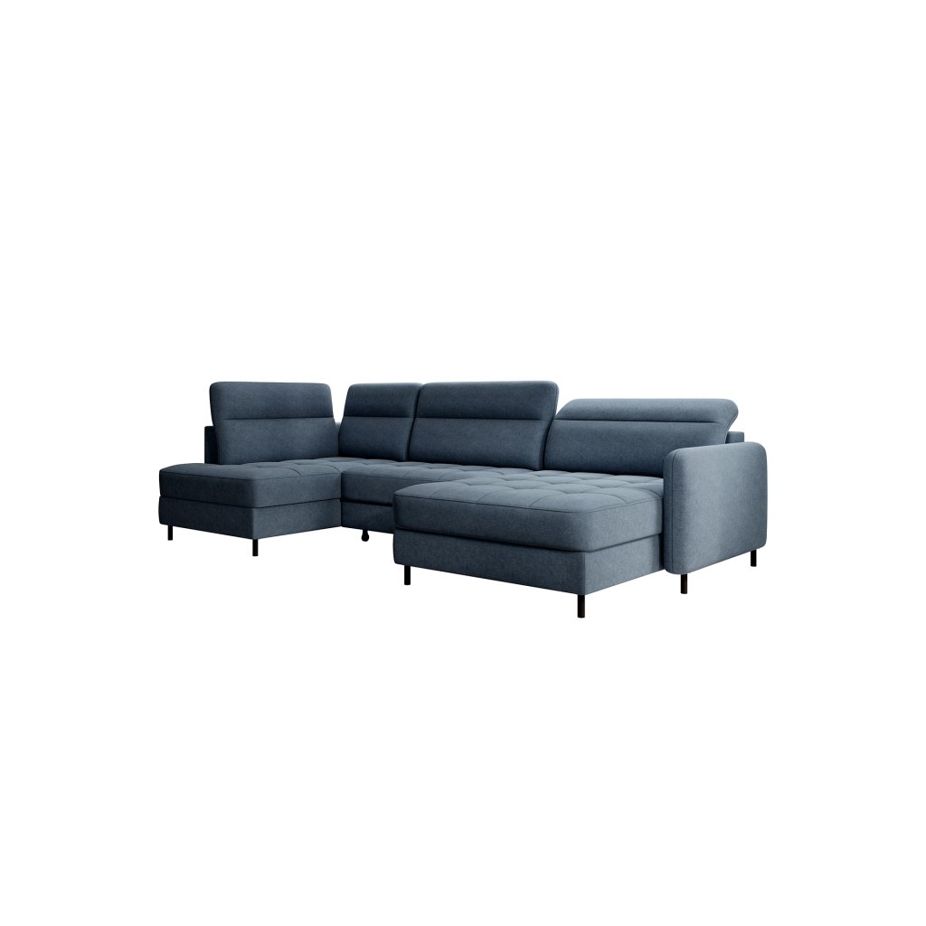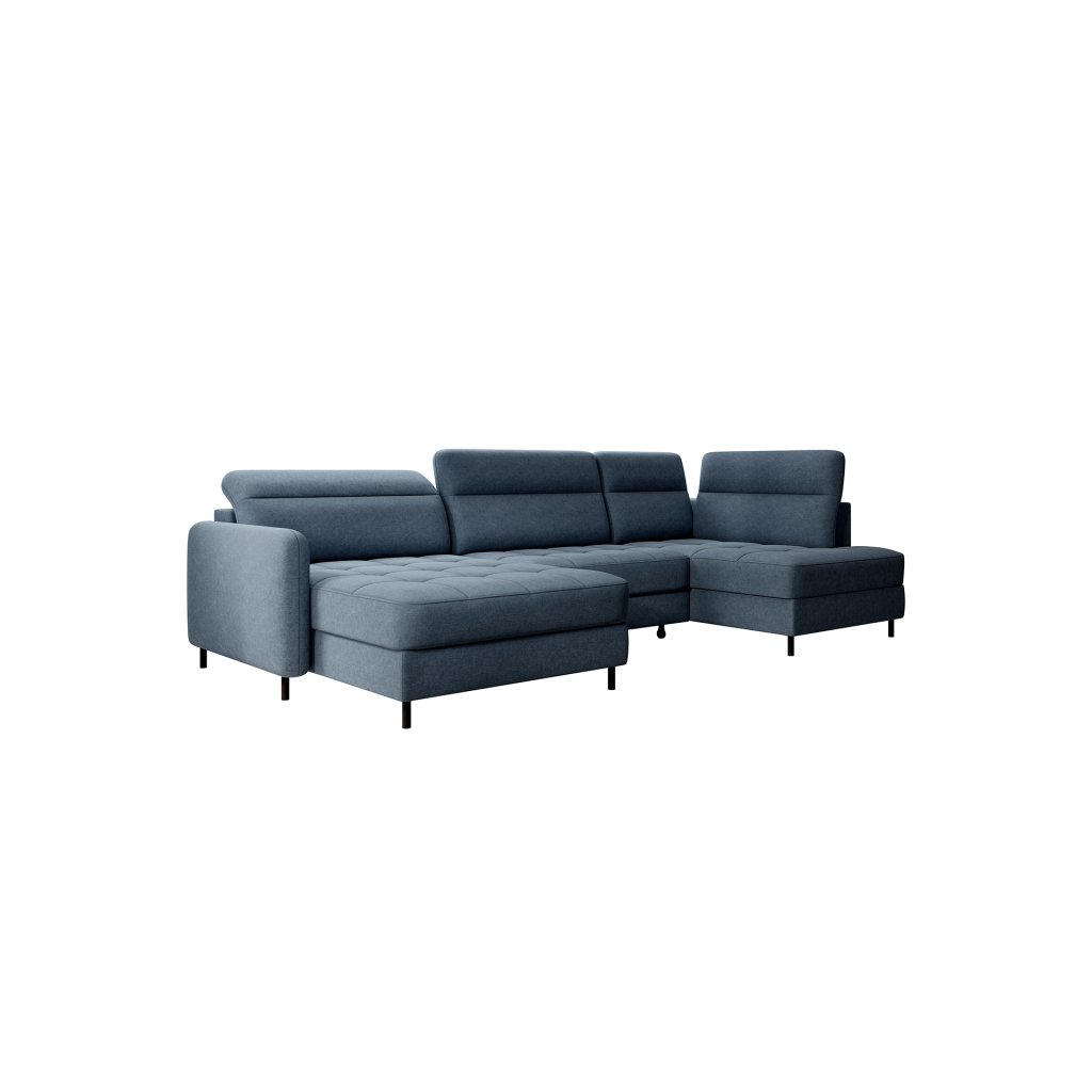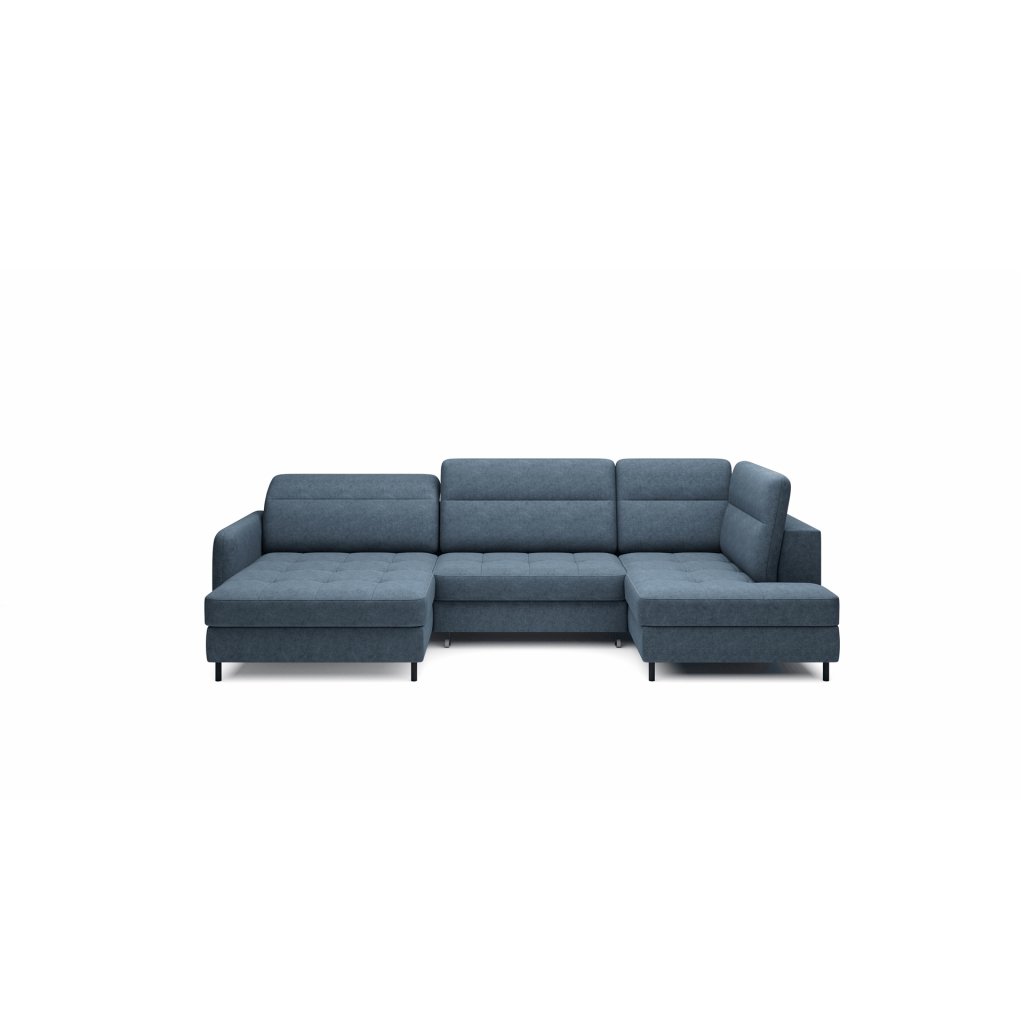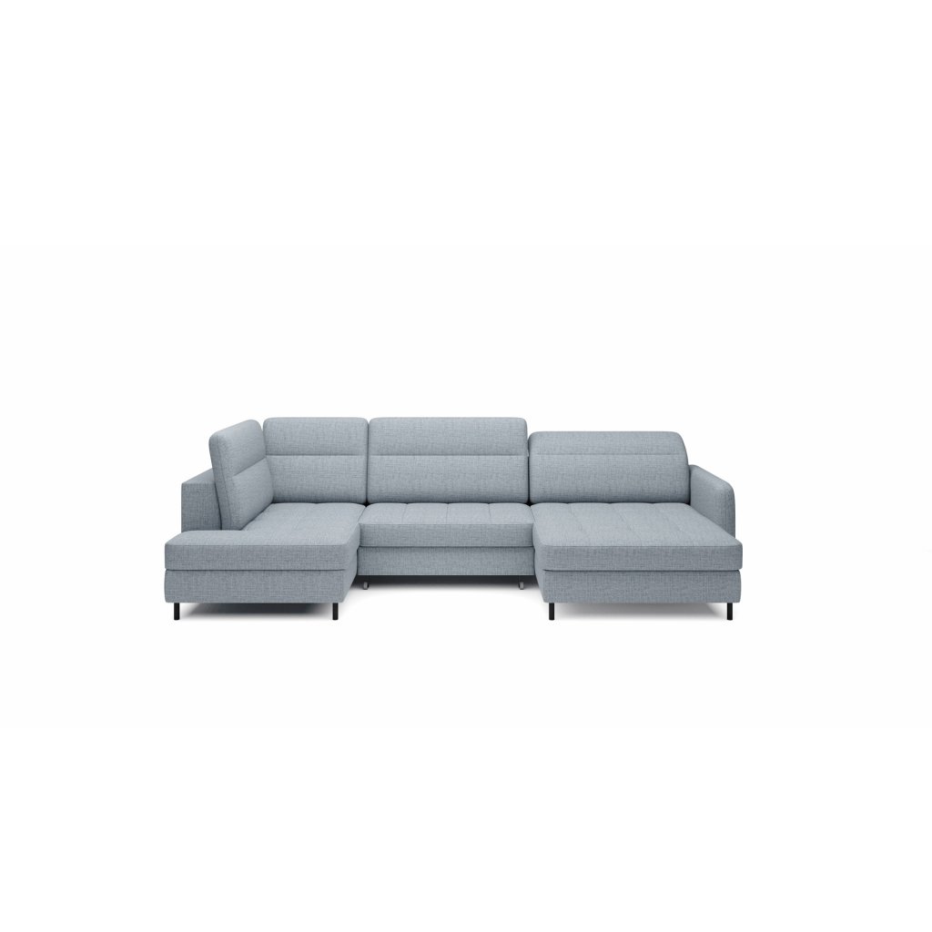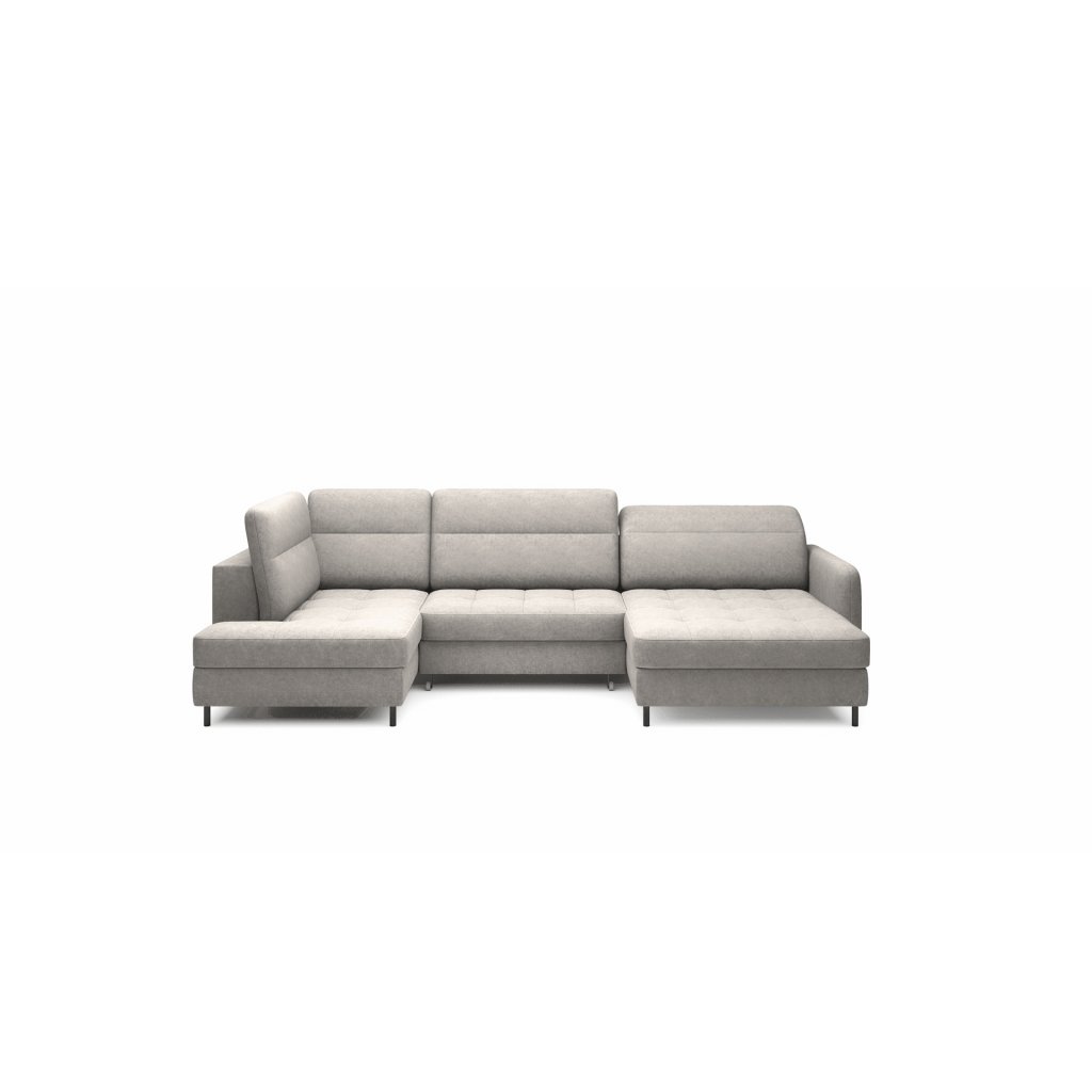Černé ocelové nohy mu dodávají moderní nádech a elegantní design z něj činí dokonalý designový prvek pro váš obývací pokoj. Rohová sedací souprava Berrto je vybavena snadno použitelným mechanismem Dolphin, který umožňuje rychlou přeměnu na pohodlné lůžko. Je dokonalým řešením, když potřebujete místo na spaní pro hosty.