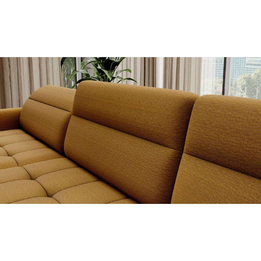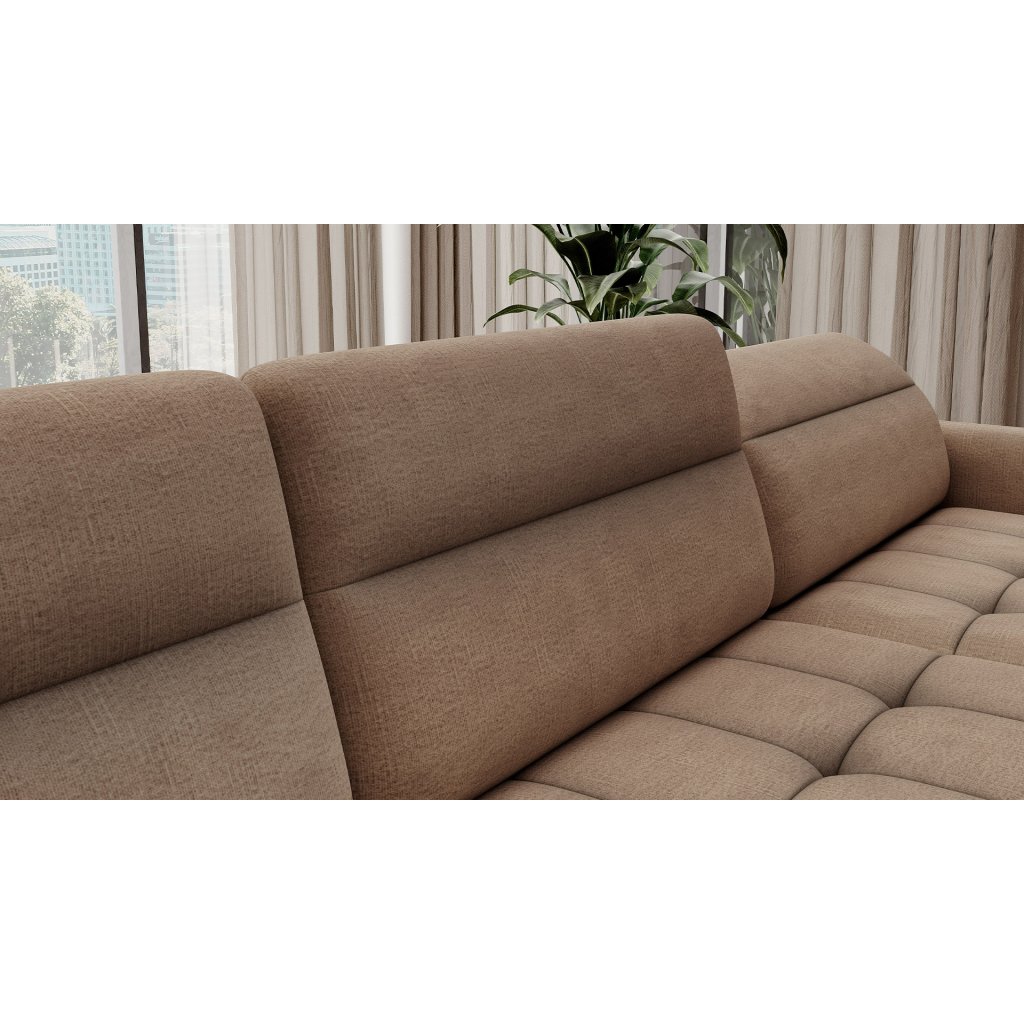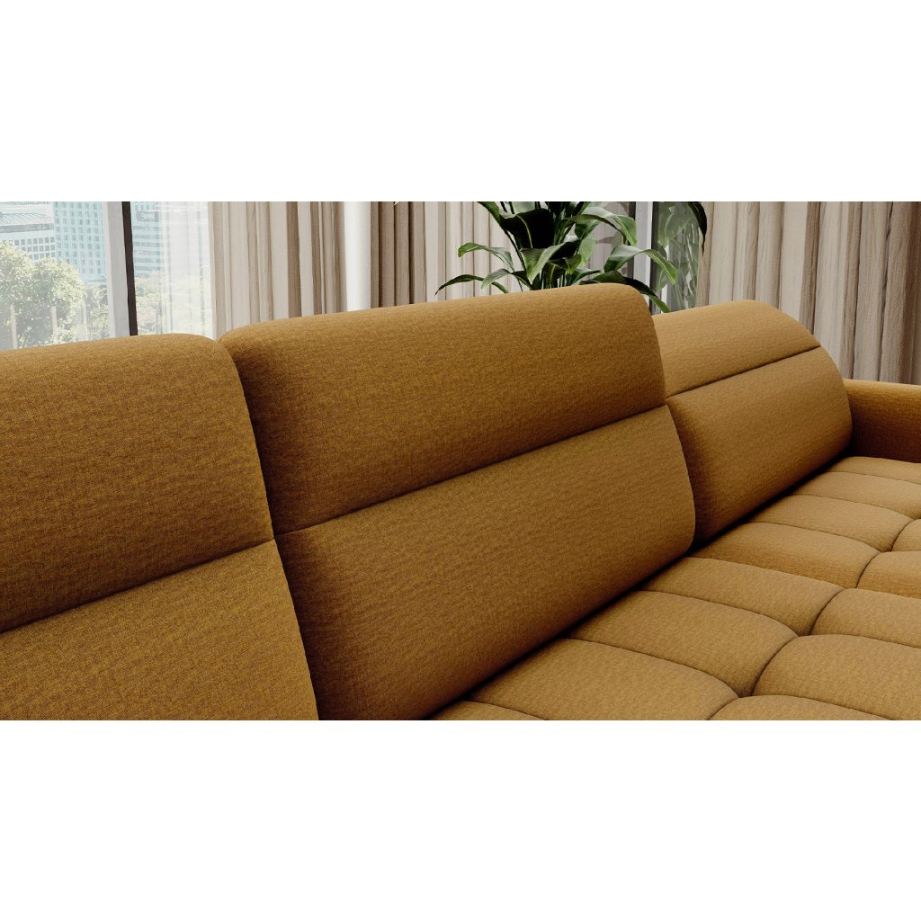 Rohová sedací souprava Berrto je mimořádně sofistikovaný kus nábytku do obývacího pokoje, který je navržen tak, aby vám poskytoval výjimečné pohodlí a funkčnost. Tato elegantní rohová sedací souprava kombinuje moderní design s vynikajícím využitím vysoce kvalitních komponentů.Rohová sedací souprava Berrto je vybavena vlnitými pružinami typu B, které ve spolupráci s vysoce elastickou pěnou HR + T2130 vytvářejí sedací plochu s jedinečným komfortem. Díky tomu je kus nábytku měkký, pružný a dokonale se přizpůsobí tvaru vašeho těla, čímž poskytuje nejen relaxaci, ale také úlevu svalům. Použití čalounických pásků a pěny T2130 v opěradle rohové sedací soupravy Berrto zaručuje její trvanlivost a odolnost proti deformaci. Nemusíte se obávat nevzhledných záhybů - tento roh si zachová svůj původní vzhled po mnoho let.