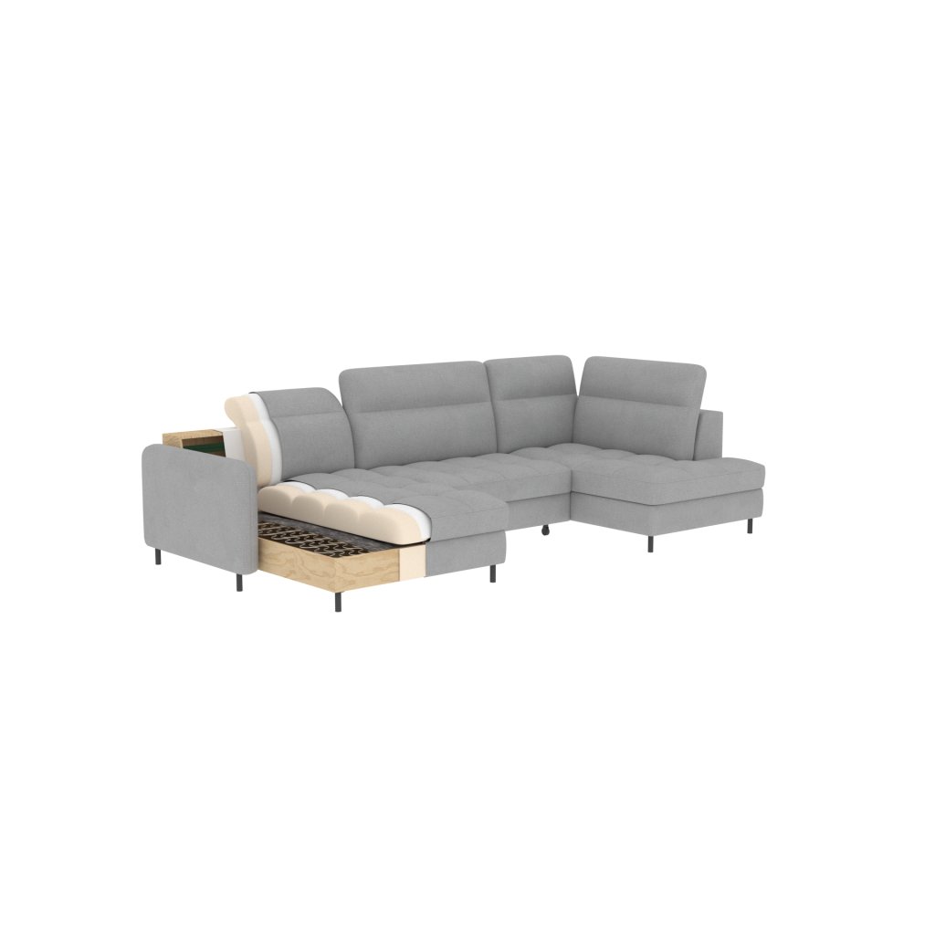 Rohová sedací souprava Berrto není jen o pohodlí, ale také o robustnosti. Její odolnost je impozantní, dosahuje nosnosti 390 kg. To znamená, že si ji můžete užívat po mnoho let bez obav o její odolnost. Rohová sedací souprava Berrto vyniká nejen svou funkčností, ale také estetickým zpracováním.