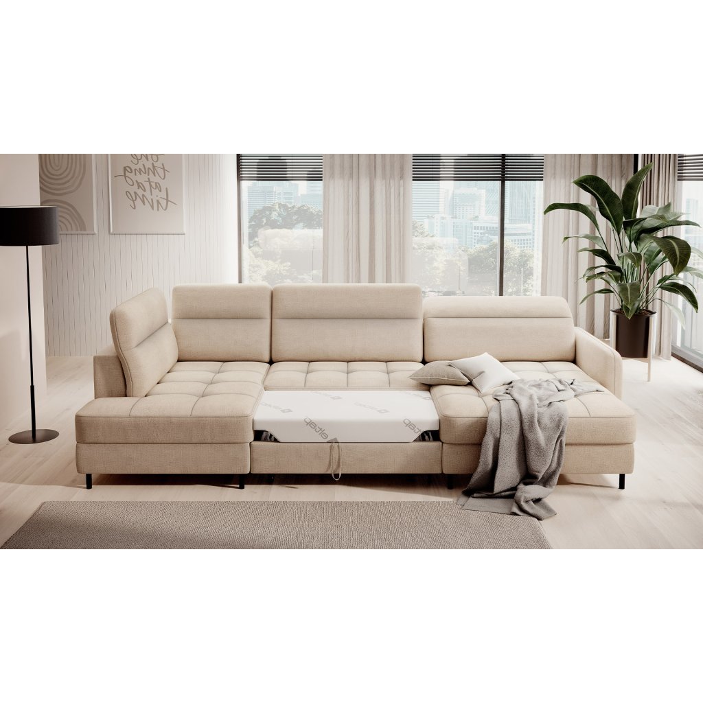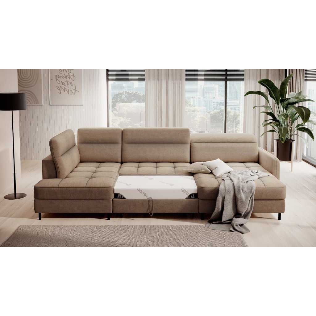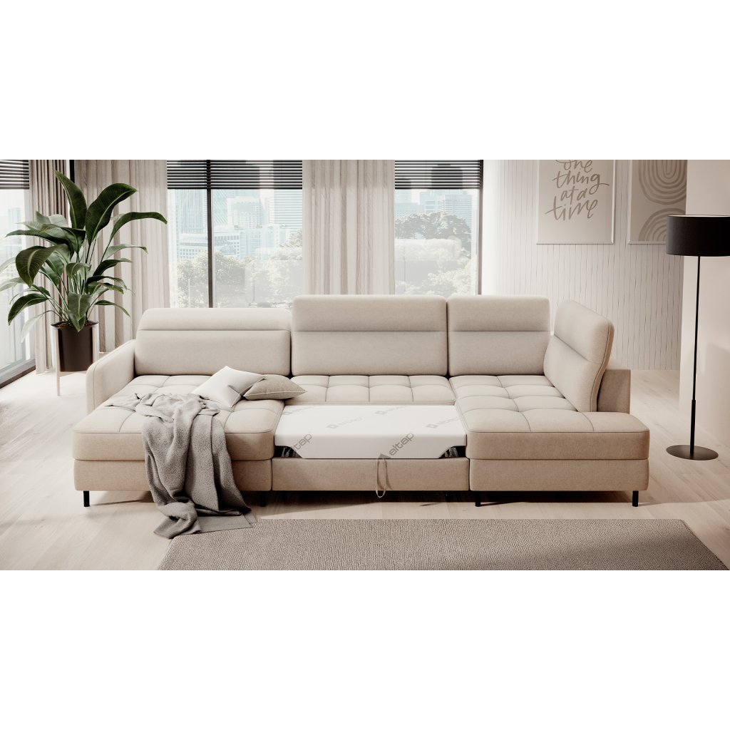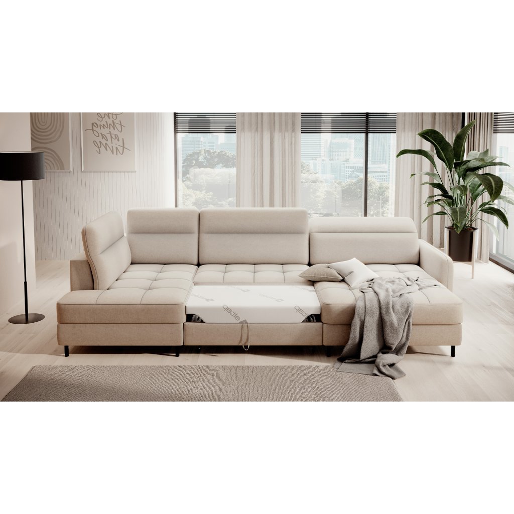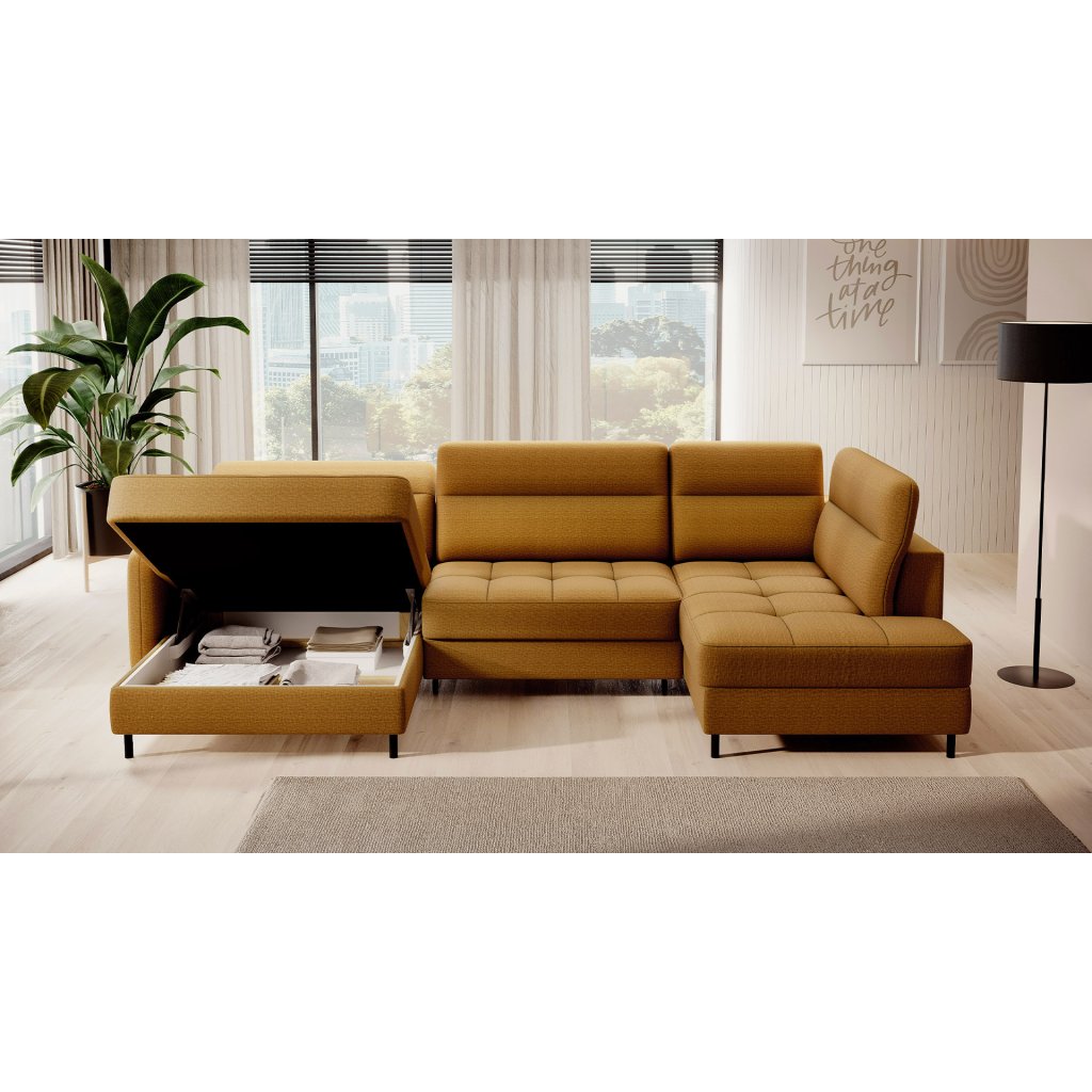 Můžete ji snadno a rychle přeměnit na pohodlné lůžko, které zajistí klidný spánek vám i vašim hostům. Roh navíc ukrývá prostorný kontejner na lůžkoviny, který pojme všechny vaše nezbytné textilie.
