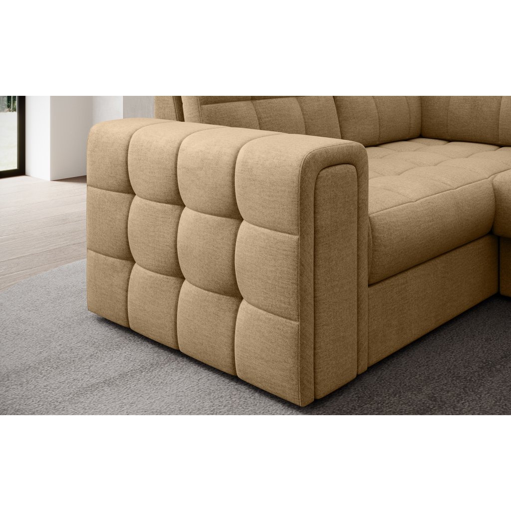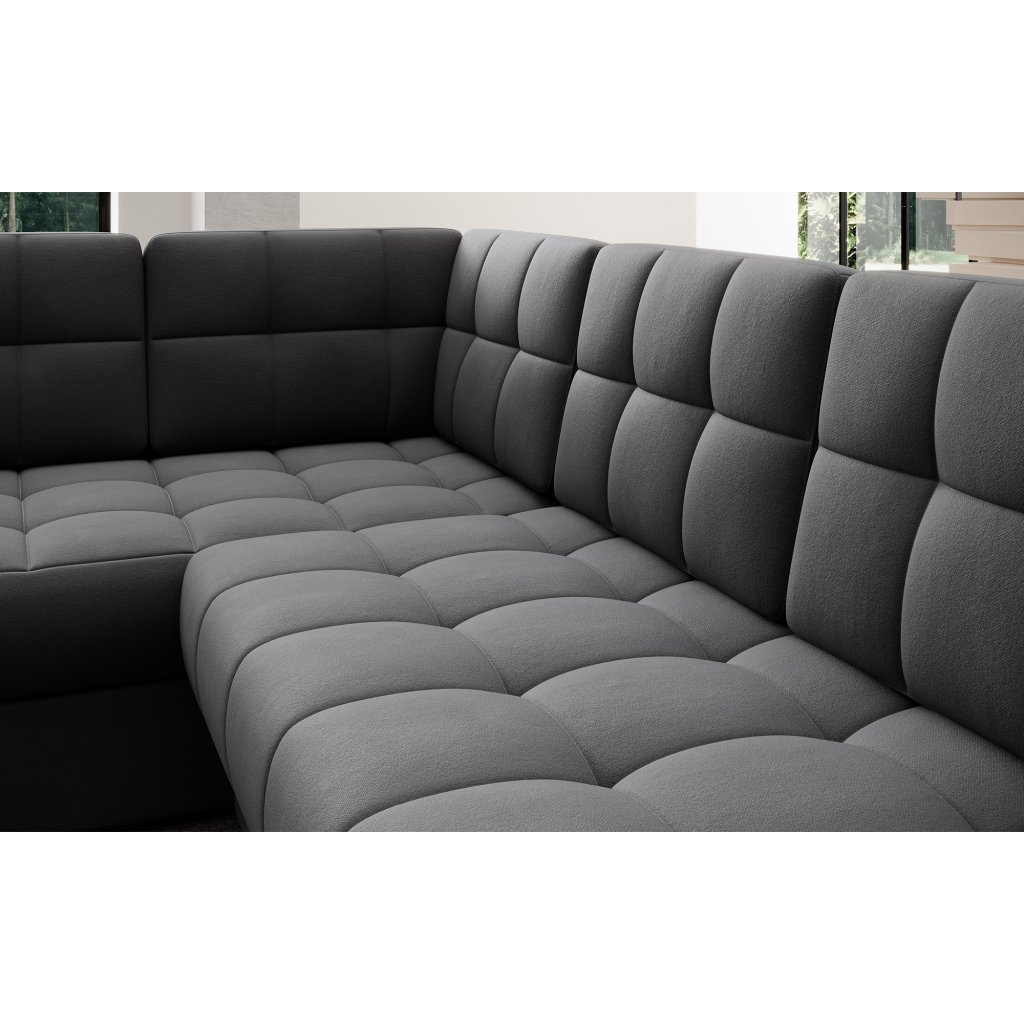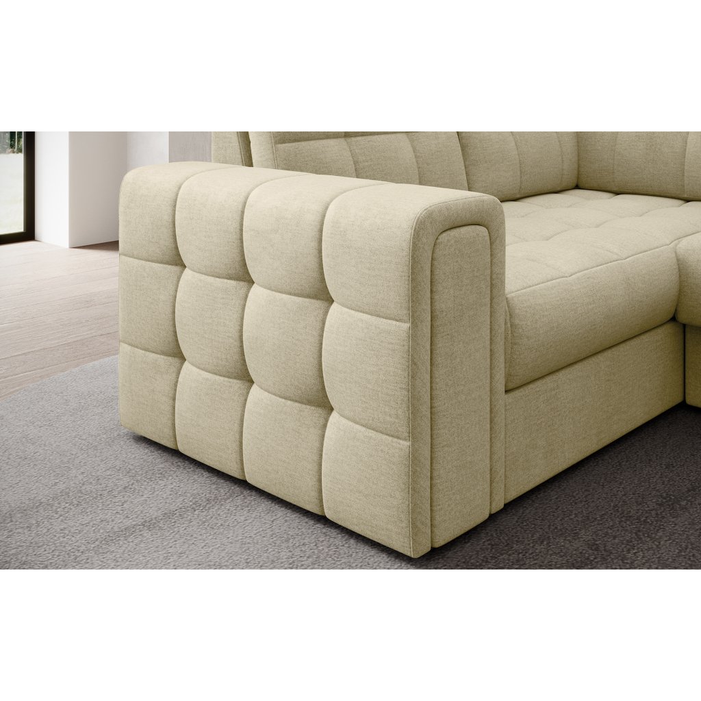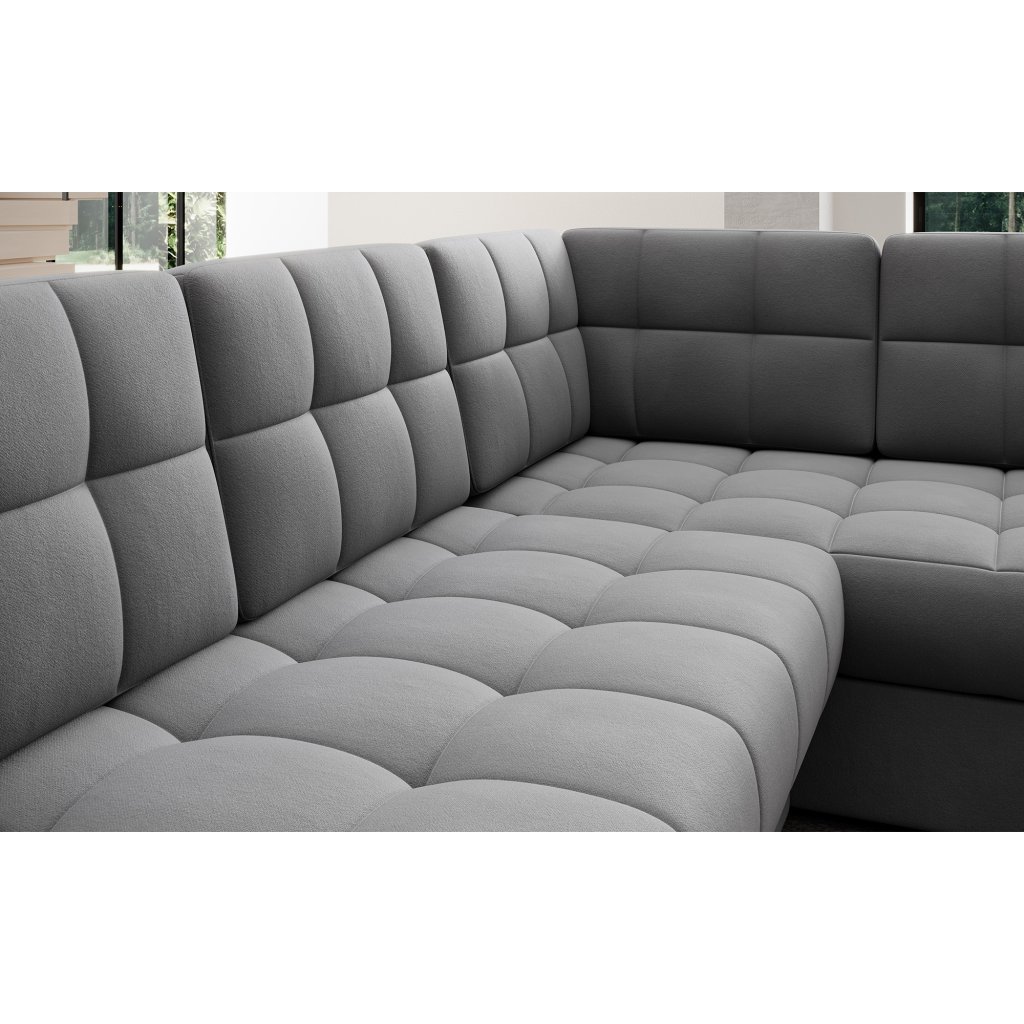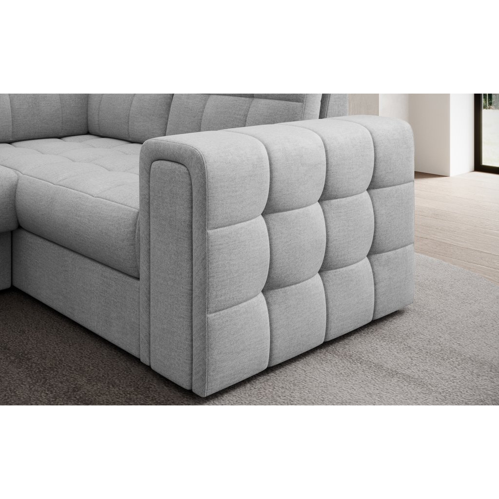 Moderní rohová pohovka s funkcí spaní Blewett 299x198x82 cm je ideální volbou pro ty, kteří hledají elegantní a pohodlnou rohovou pohovku do obývacího pokoje.Rohová sedací souprava Blewett se vyznačuje pohodlným sedákem z vlnité pružiny typu B a polyuretanových pěn T2540 a T2130, které zajišťují pohodlí a dlouhou životnost.