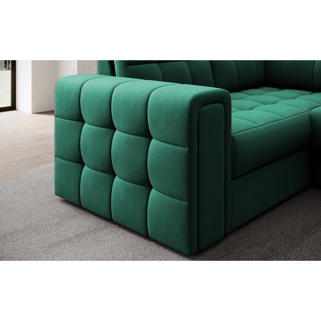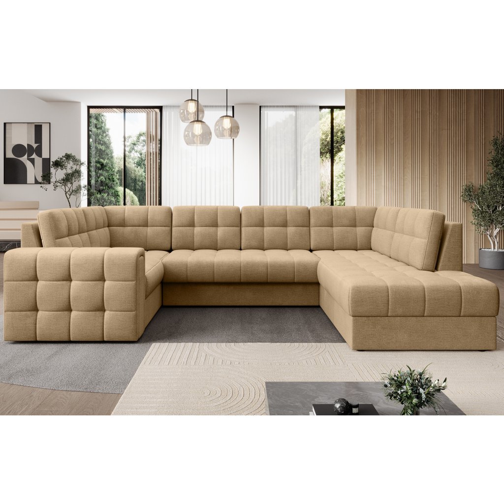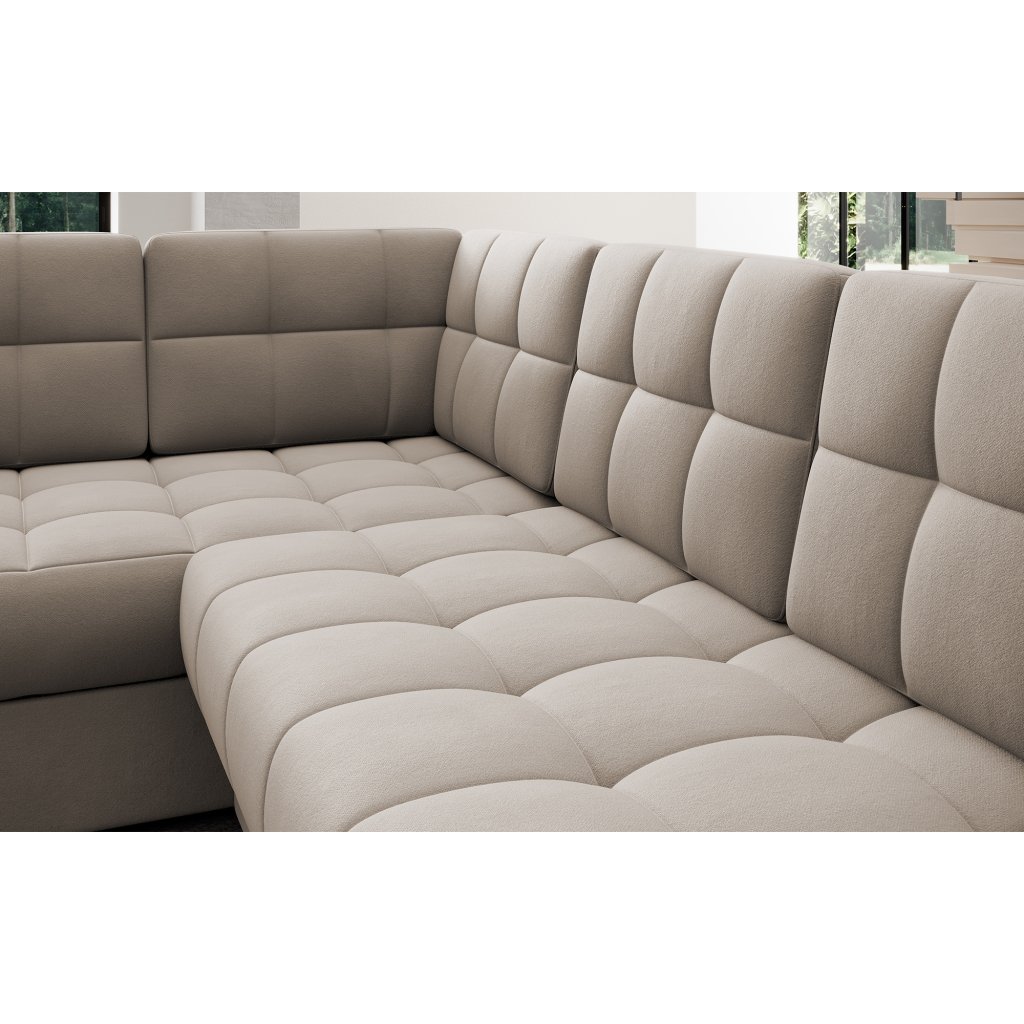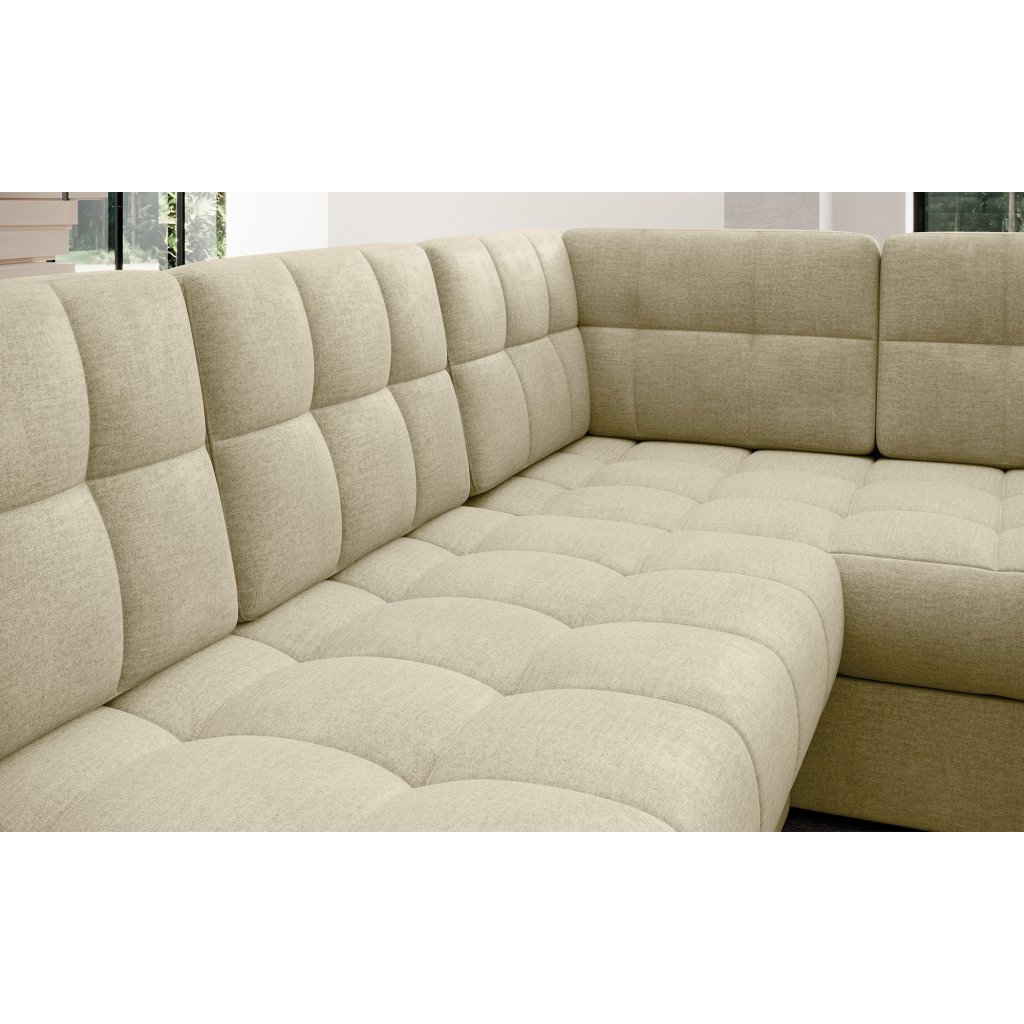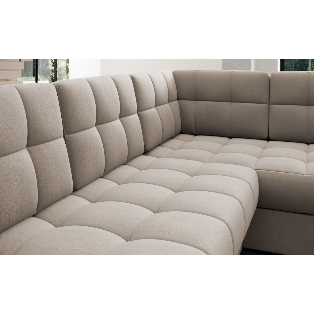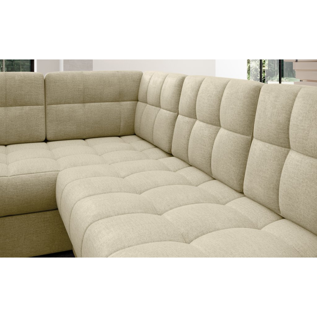 Moderní rohová pohovka s funkcí spaní Blewett 299x198x82 cm je ideální volbou pro ty, kteří hledají elegantní a pohodlnou rohovou pohovku do obývacího pokoje.Rohová sedací souprava Blewett se vyznačuje pohodlným sedákem z vlnité pružiny typu B a polyuretanových pěn T2540 a T2130, které zajišťují pohodlí a dlouhou životnost.