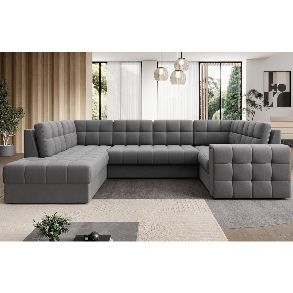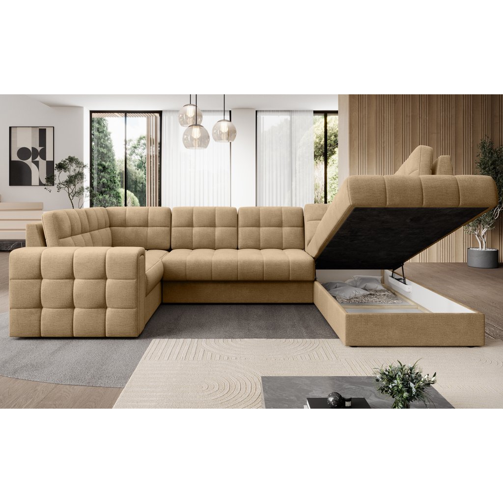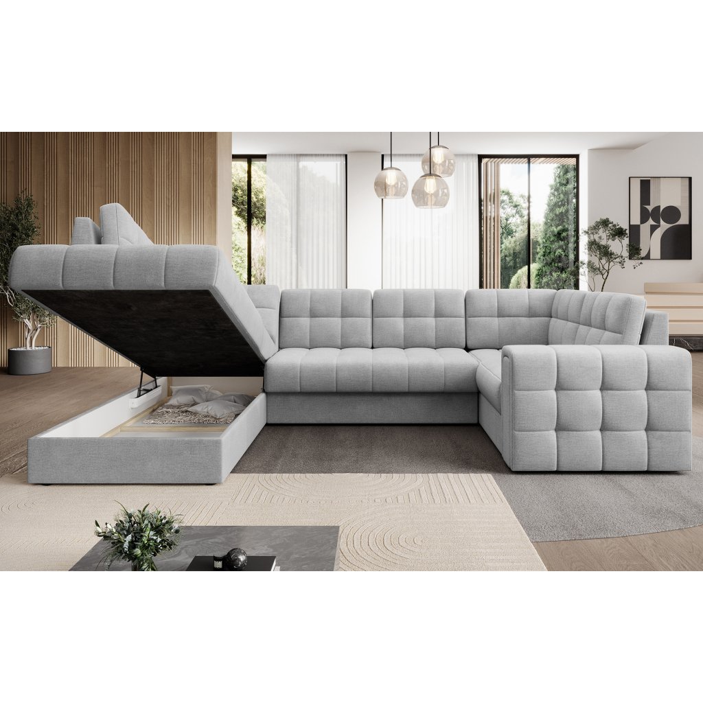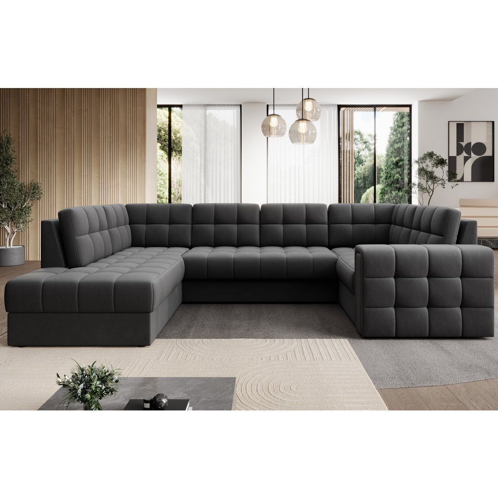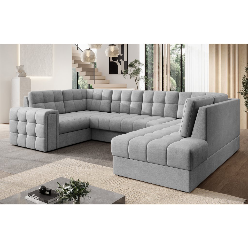 Moderní rohová pohovka s funkcí spaní Blewett 299x198x82 cm je ideální volbou pro ty, kteří hledají elegantní a pohodlnou rohovou pohovku do obývacího pokoje.Rohová sedací souprava Blewett se vyznačuje pohodlným sedákem z vlnité pružiny typu B a polyuretanových pěn T2540 a T2130, které zajišťují pohodlí a dlouhou životnost.