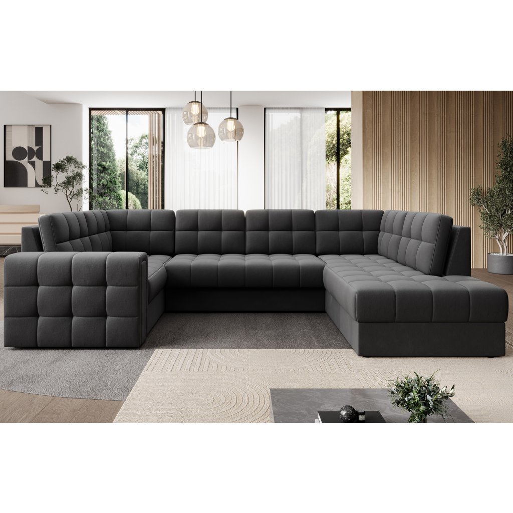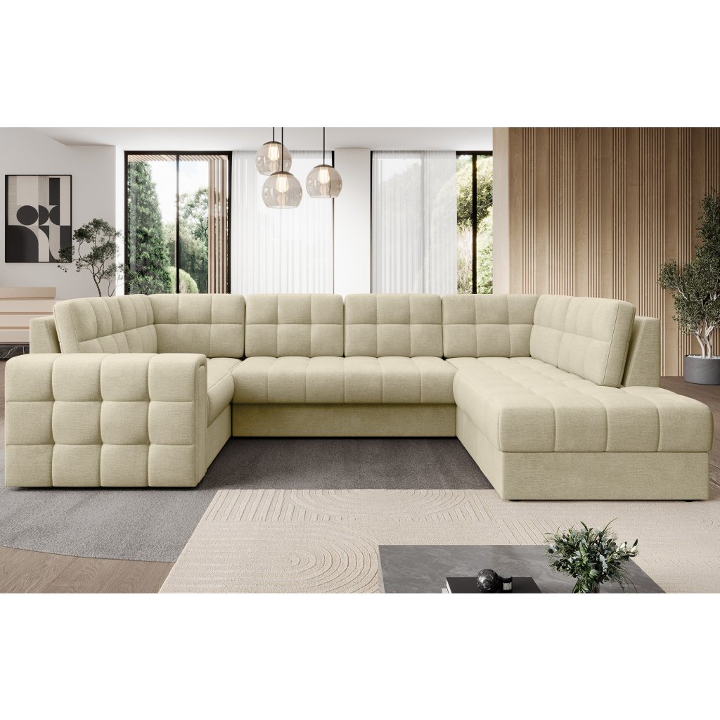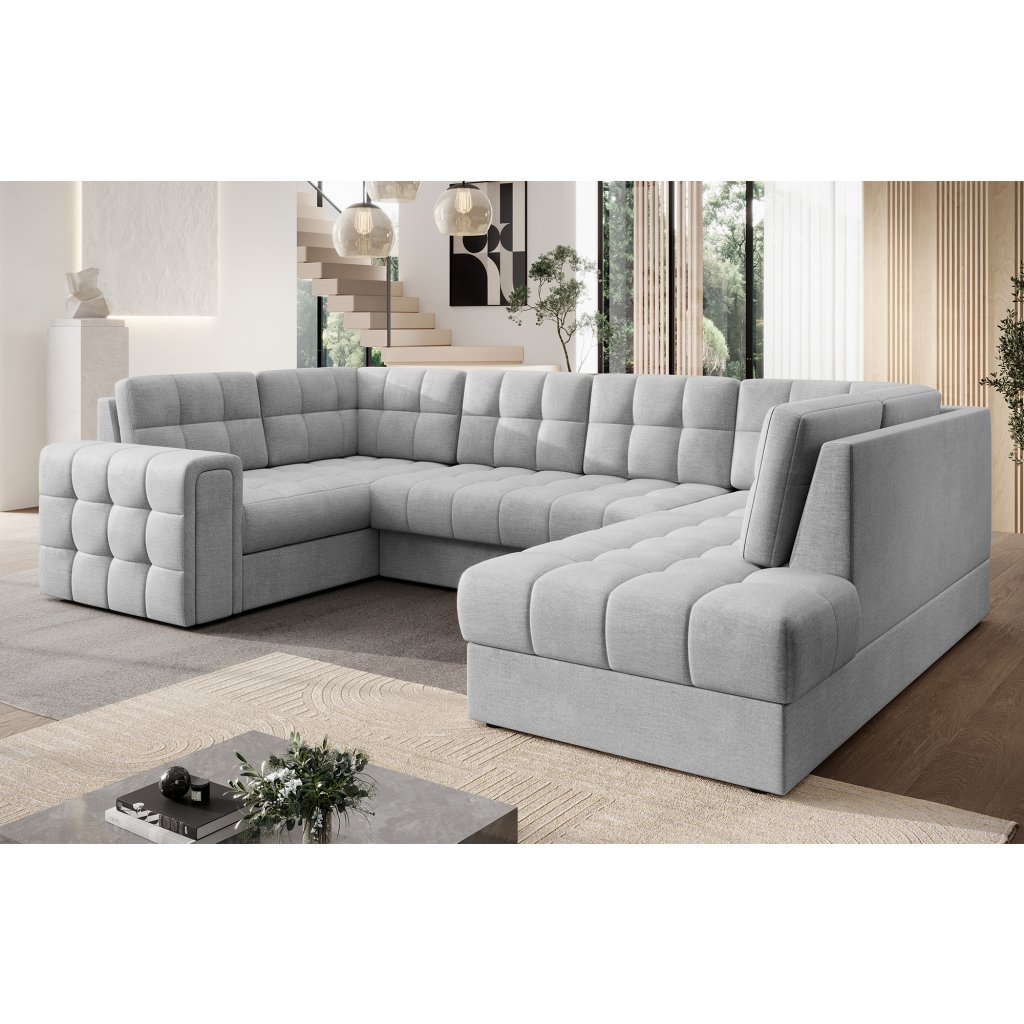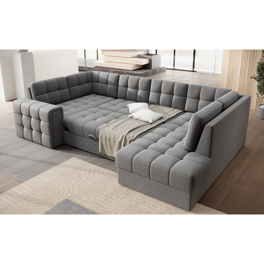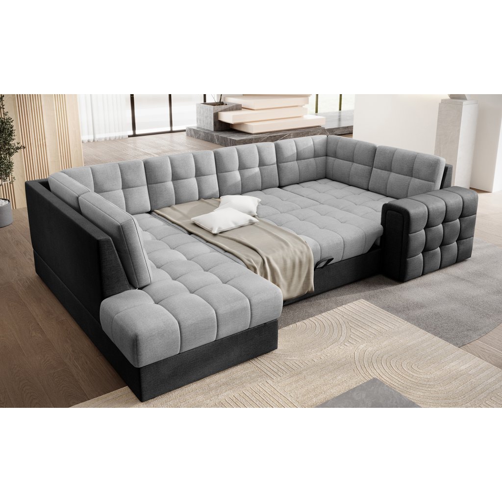 Moderní rohová pohovka s funkcí spaní Blewett 299x198x82 cm je ideální volbou pro ty, kteří hledají elegantní a pohodlnou rohovou pohovku do obývacího pokoje.Rohová sedací souprava Blewett se vyznačuje pohodlným sedákem z vlnité pružiny typu B a polyuretanových pěn T2540 a T2130, které zajišťují pohodlí a dlouhou životnost.
