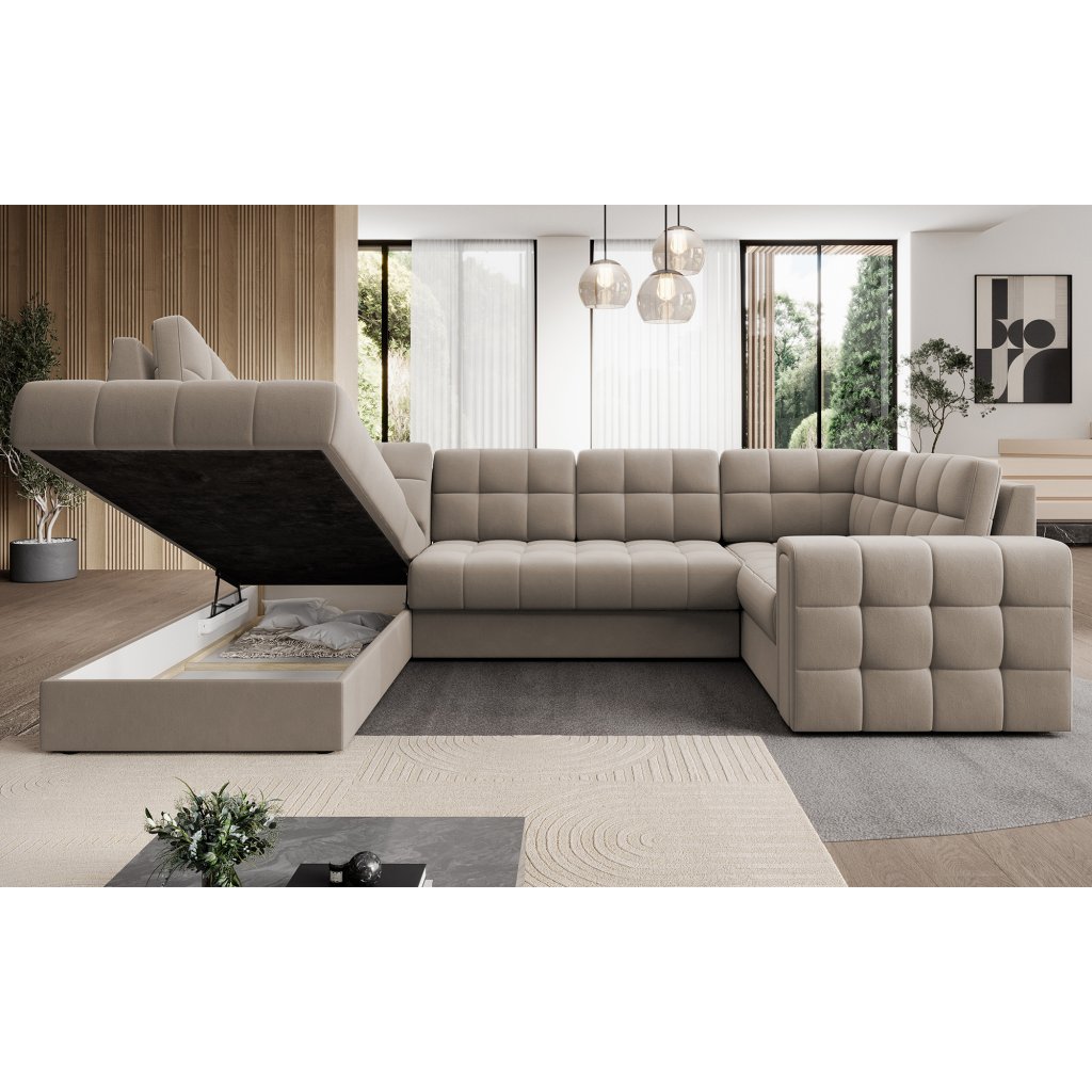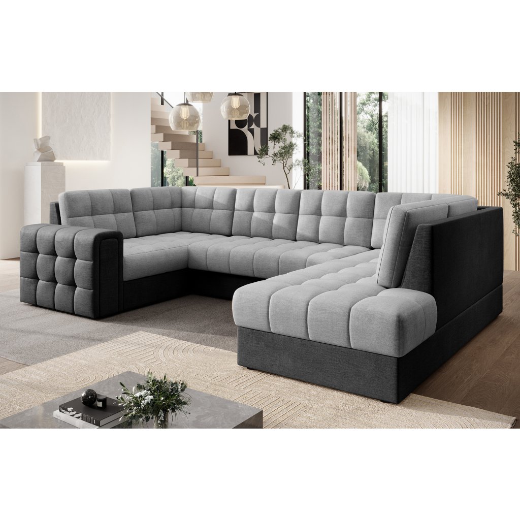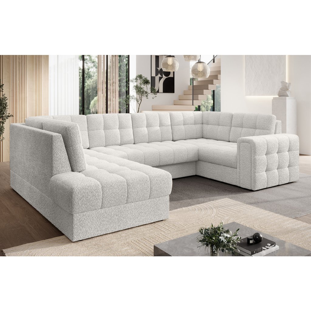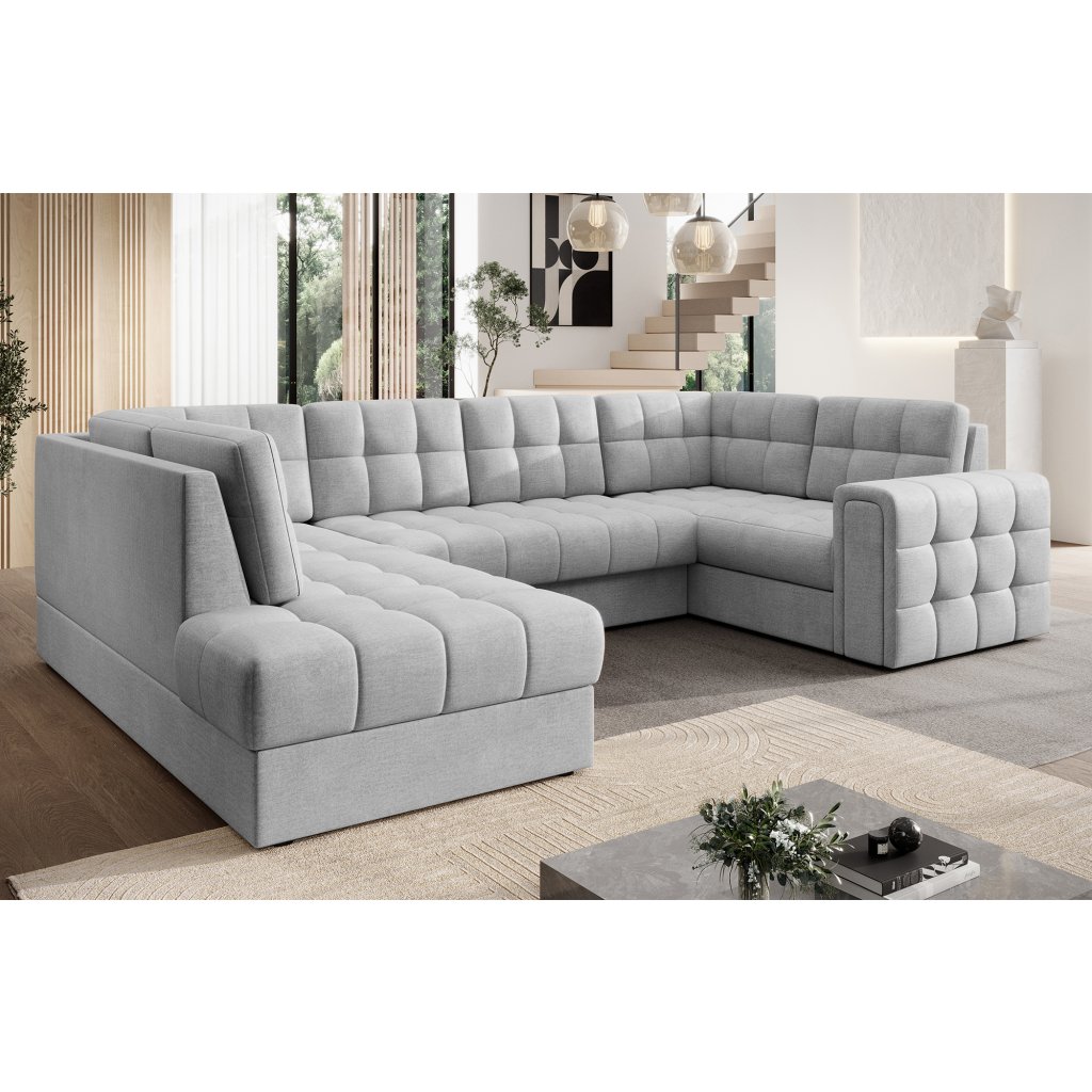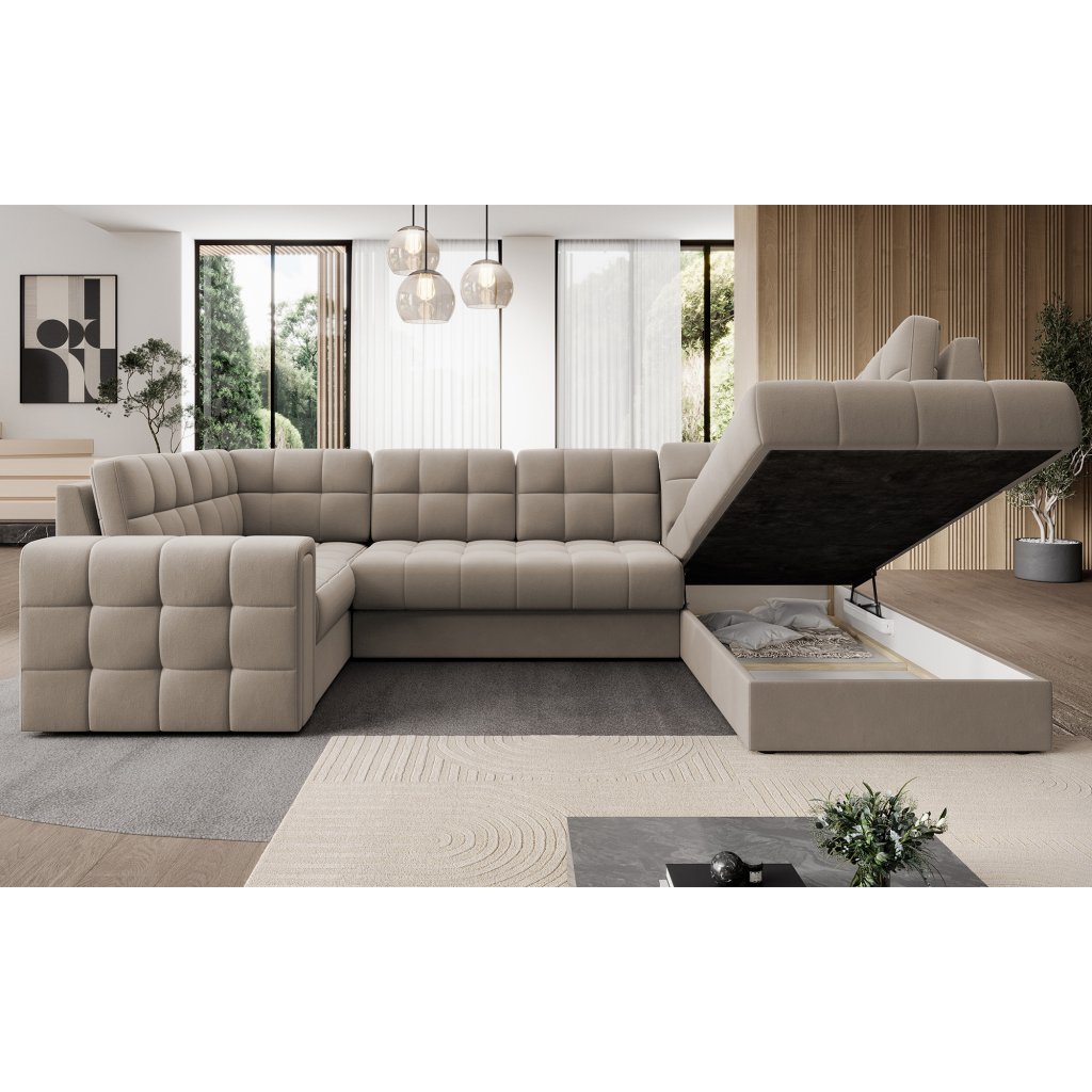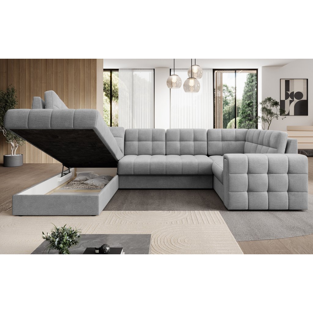 Moderní rohová pohovka s funkcí spaní Blewett 299x198x82 cm je ideální volbou pro ty, kteří hledají elegantní a pohodlnou rohovou pohovku do obývacího pokoje.Rohová sedací souprava Blewett se vyznačuje pohodlným sedákem z vlnité pružiny typu B a polyuretanových pěn T2540 a T2130, které zajišťují pohodlí a dlouhou životnost.