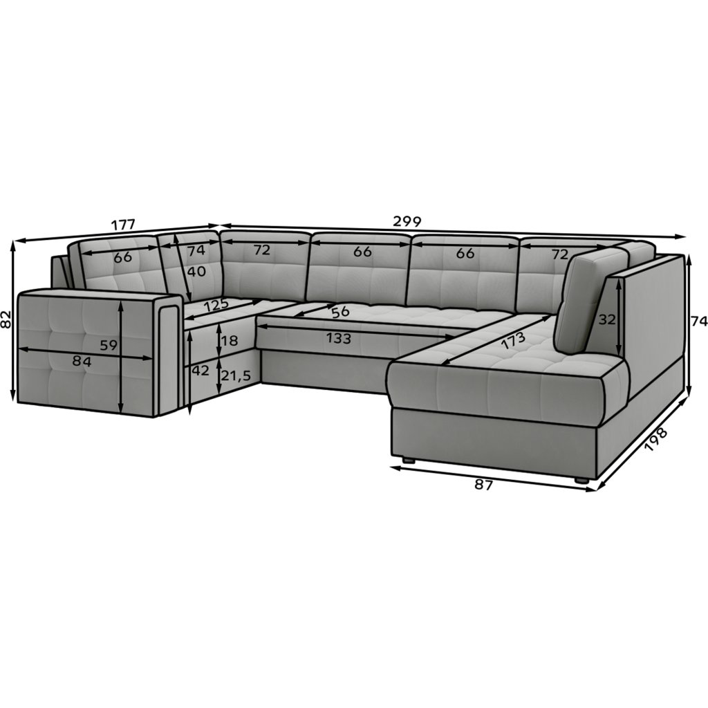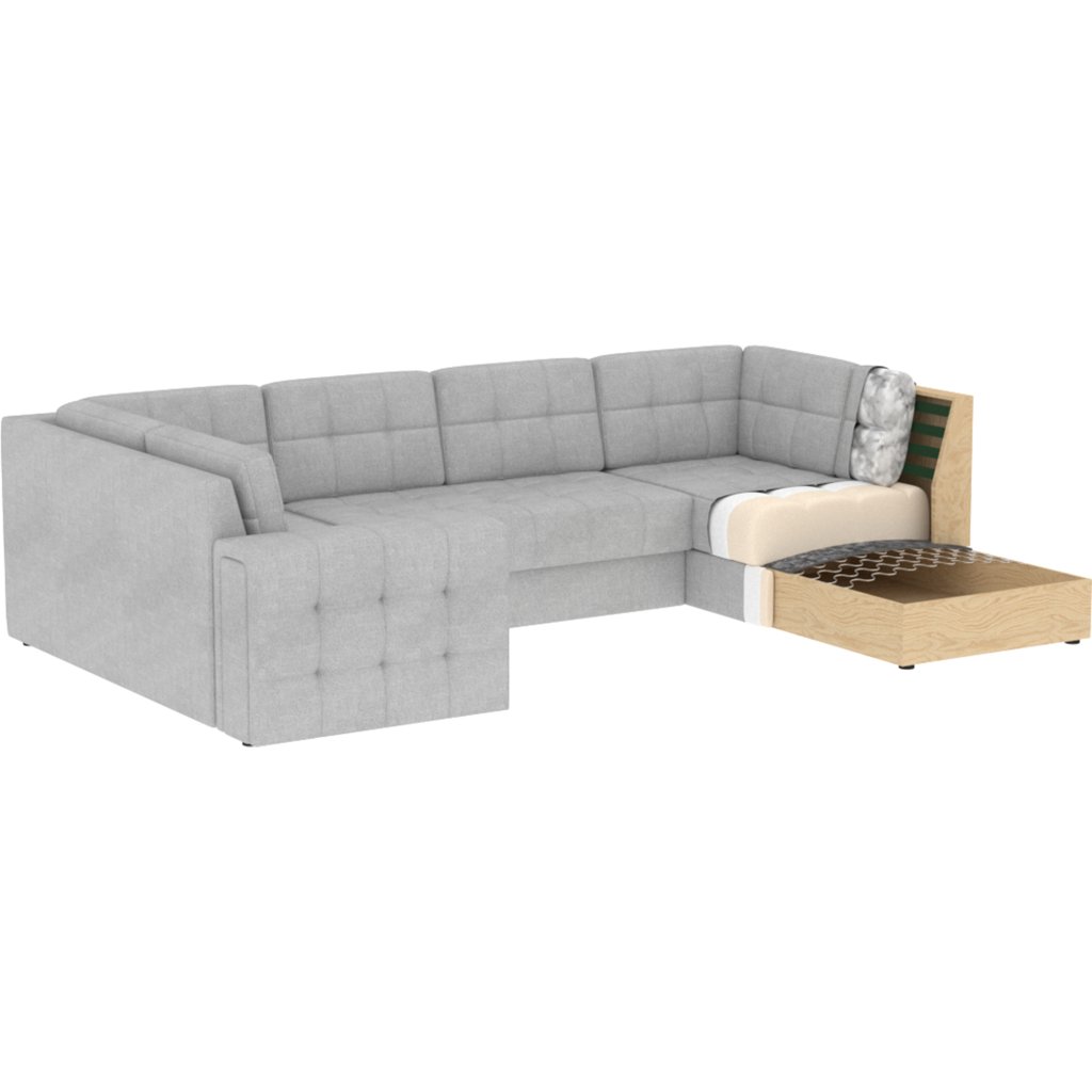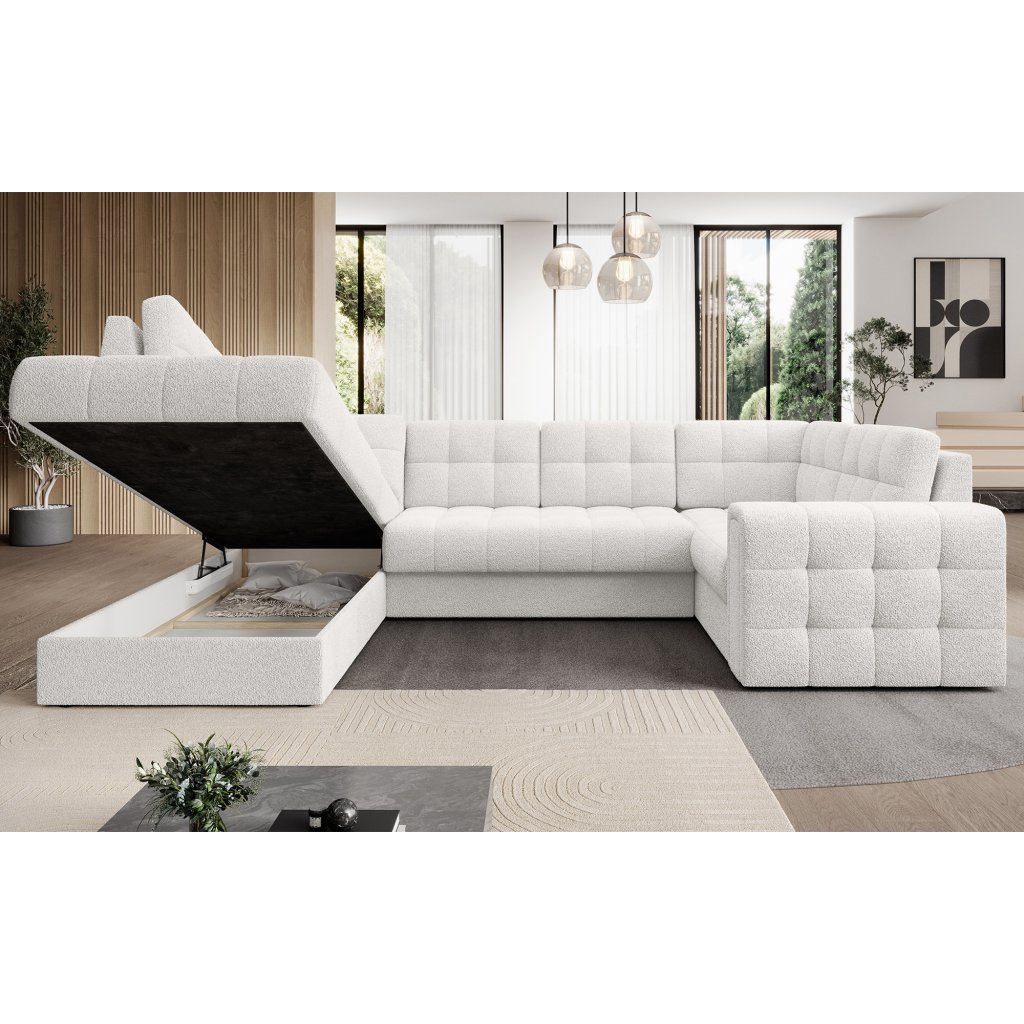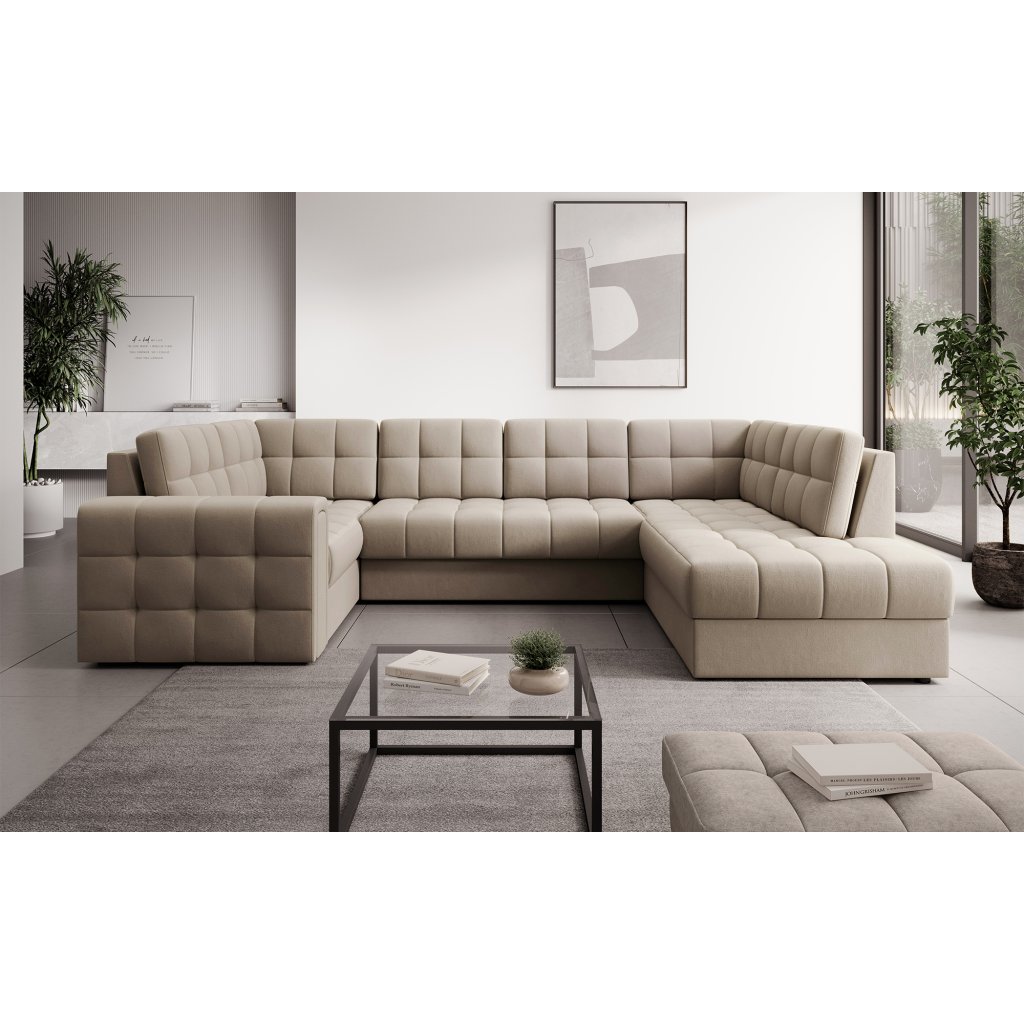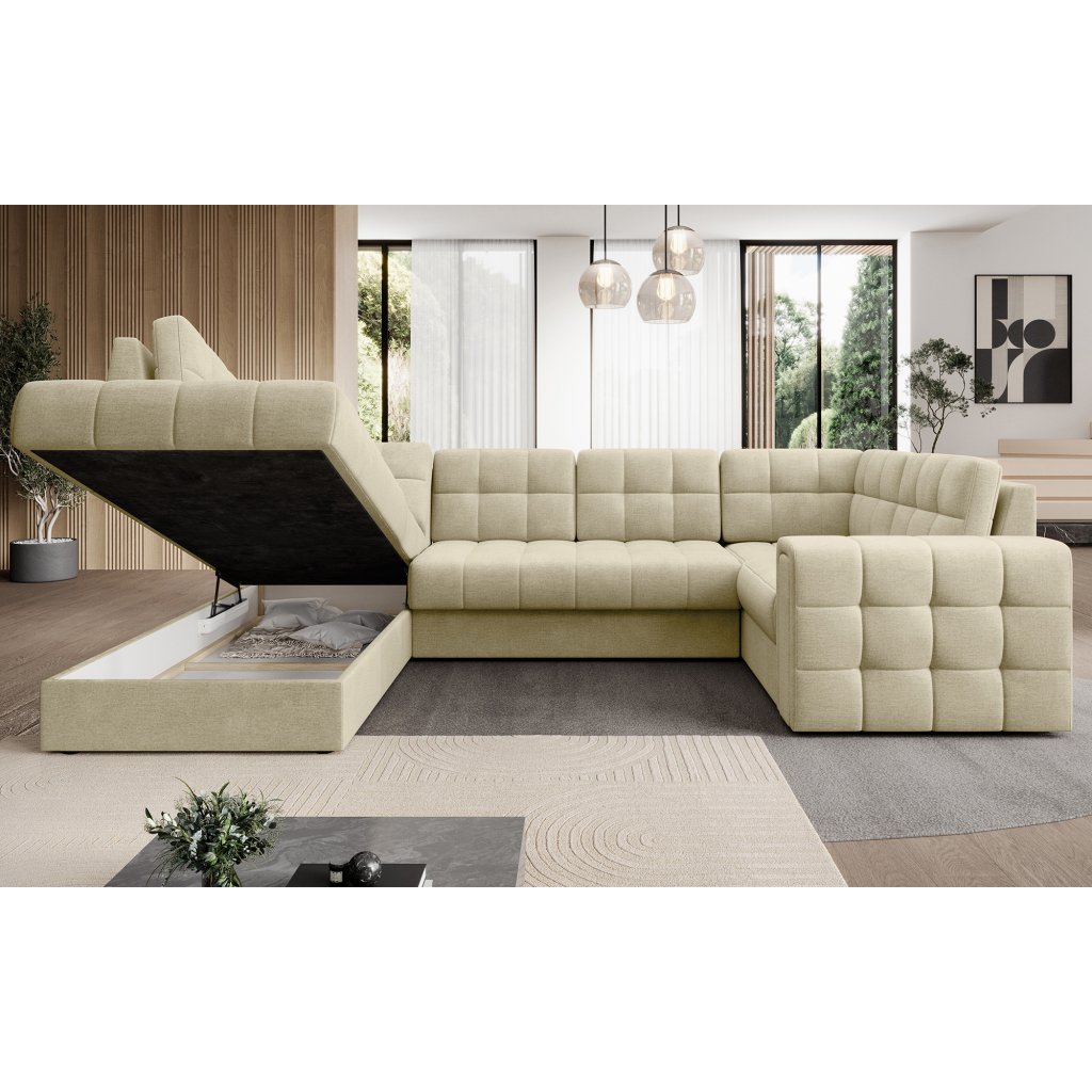 Moderní rohová pohovka s funkcí spaní Blewett 299x198x82 cm je ideální volbou pro ty, kteří hledají elegantní a pohodlnou rohovou pohovku do obývacího pokoje.Rohová sedací souprava Blewett se vyznačuje pohodlným sedákem z vlnité pružiny typu B a polyuretanových pěn T2540 a T2130, které zajišťují pohodlí a dlouhou životnost.