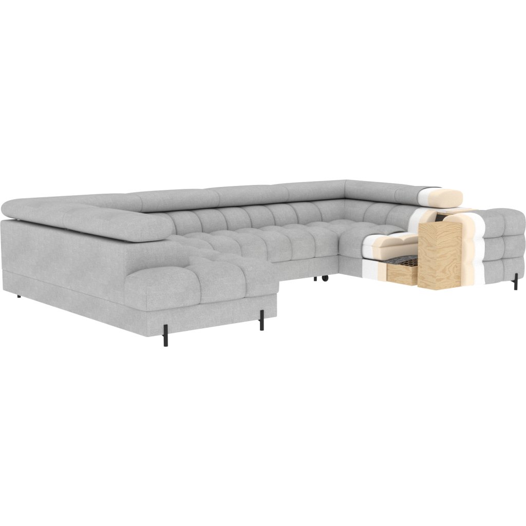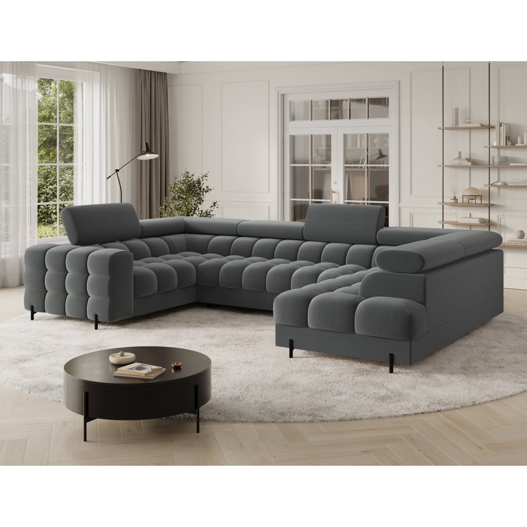 Sedačka Fectory 346x205x93 cm je stylový a praktický nábytek do obývacího pokoje, který spojuje moderní design s vysokou funkčností. Pohovka je vybavena dvěma vrstvami pěny – T3030 a profilovanou HR3030 – což zajišťuje komfortní sezení i spánek. Praktická rozkládací funkce a prostorný úložný prostor na lůžkoviny zvyšují pohodlí a každodenní využitelnost.