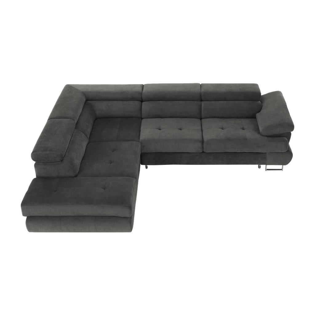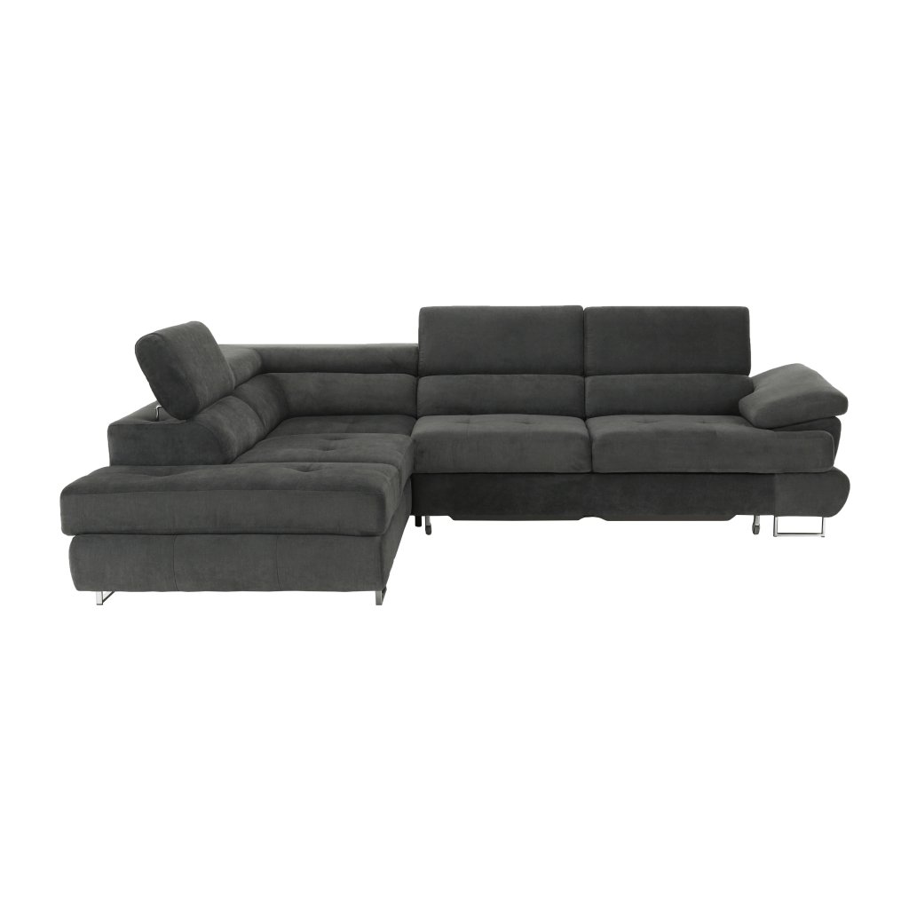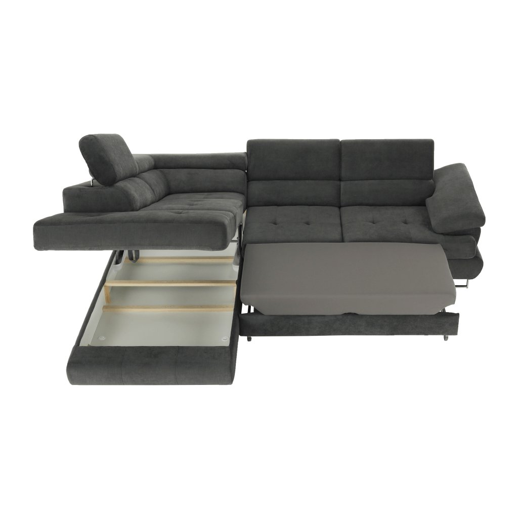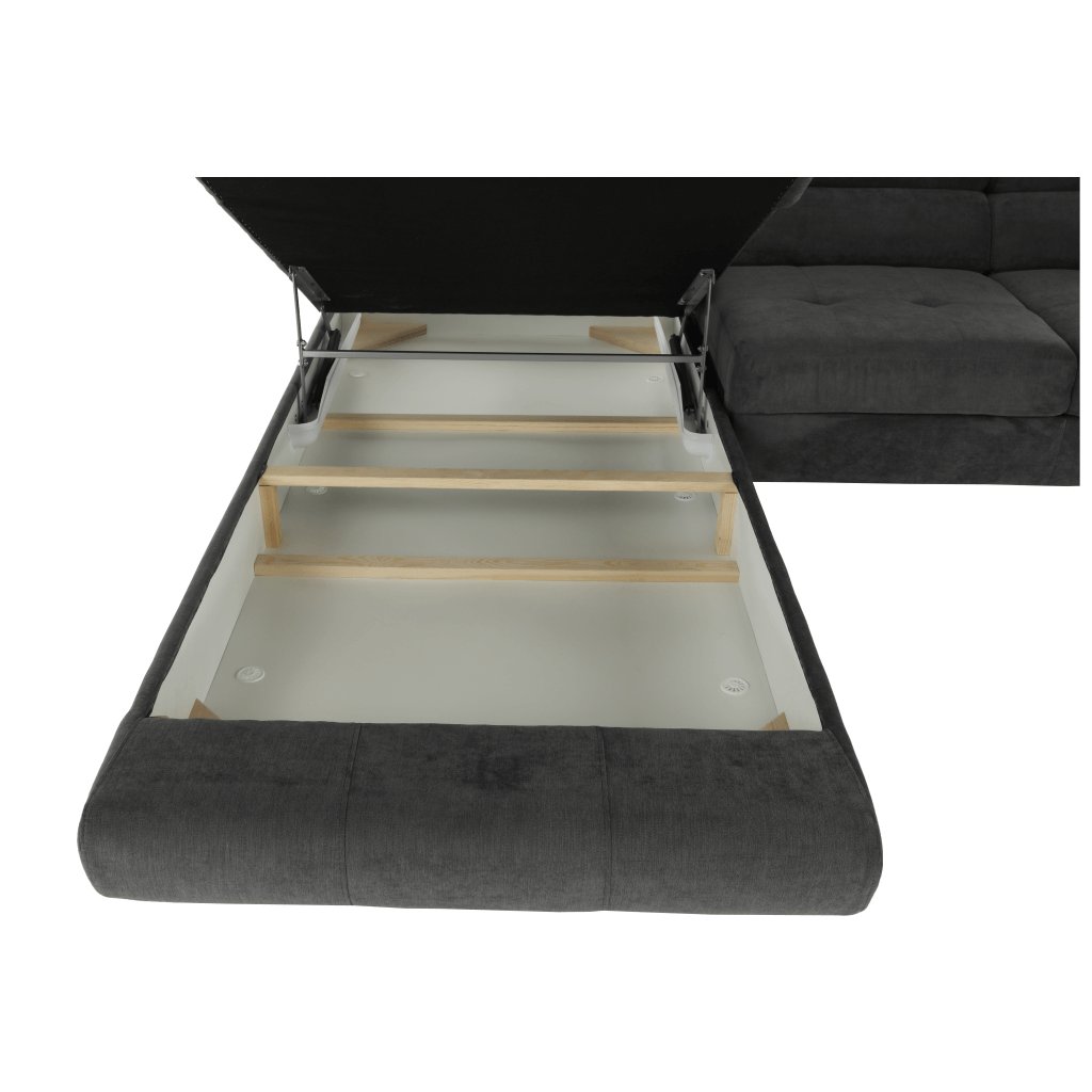 Sedací souprava s úložným prostorem, tmavě šedá, látka, levá, BUTON R