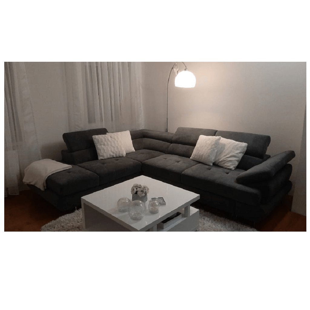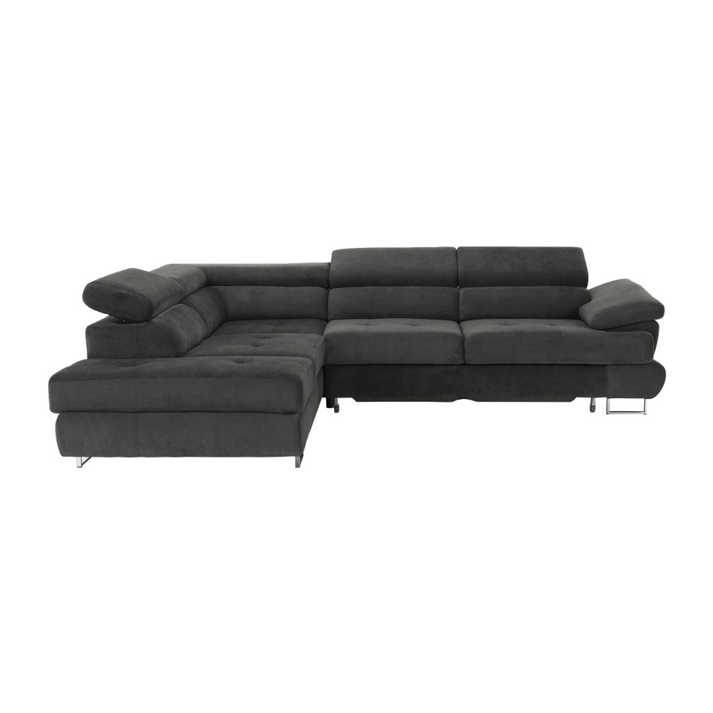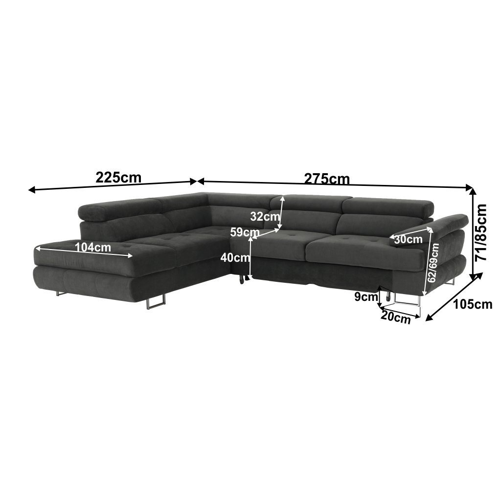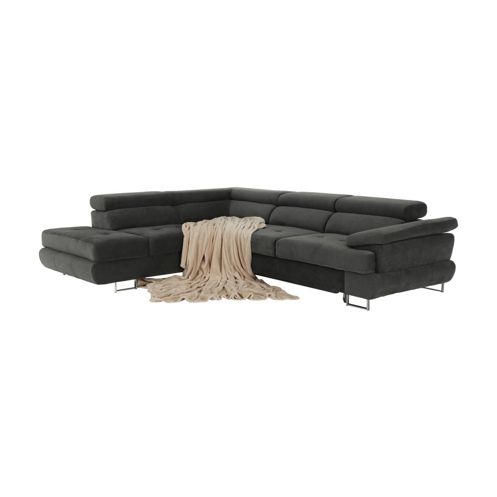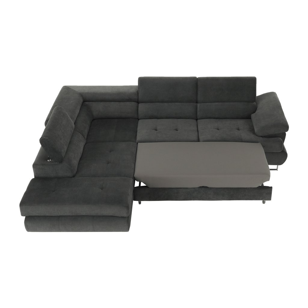 Sedací souprava s úložným prostorem, tmavě šedá, látka, levá, BUTON R