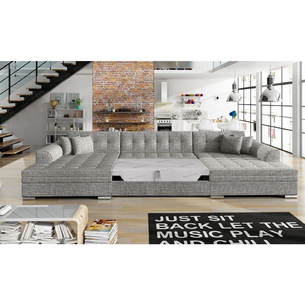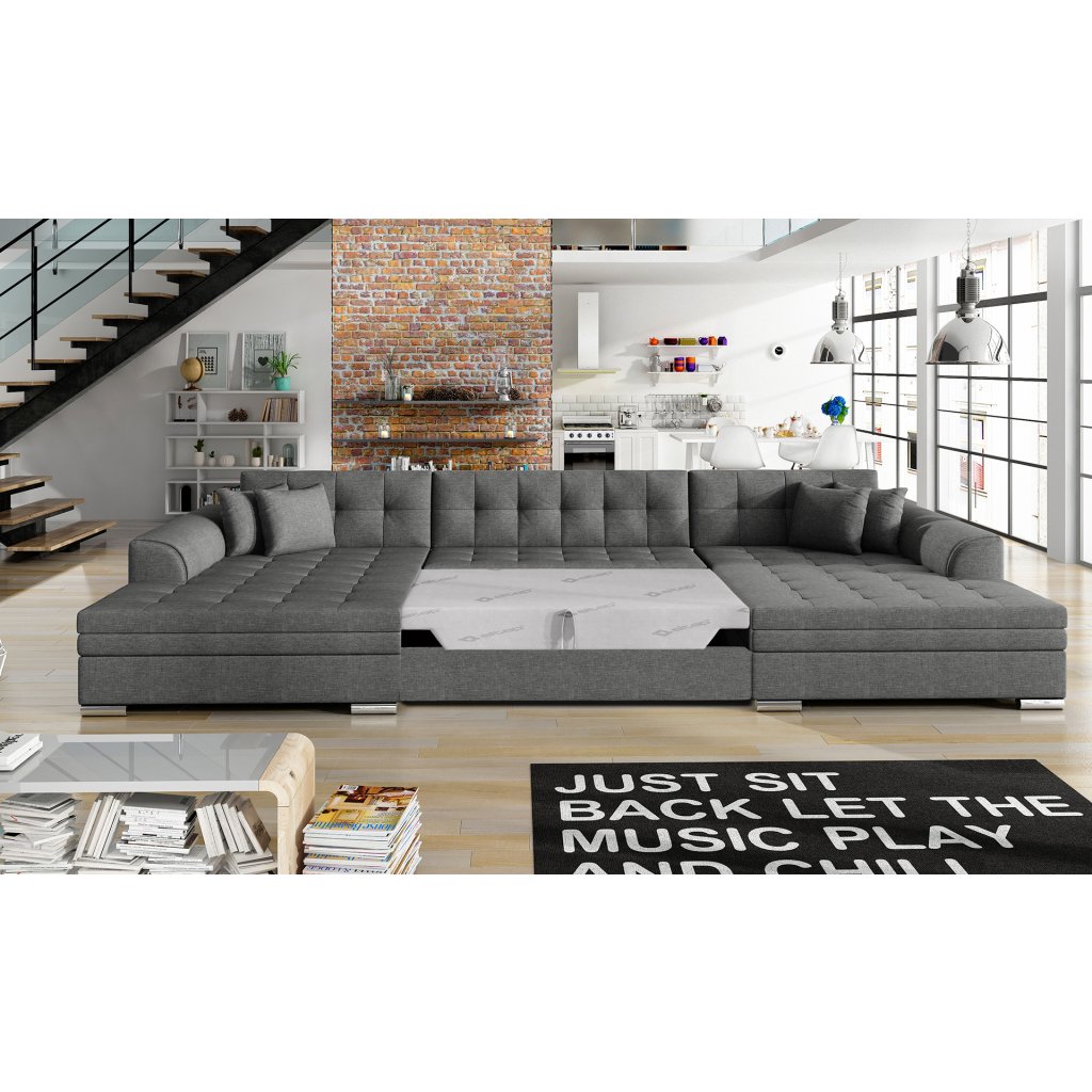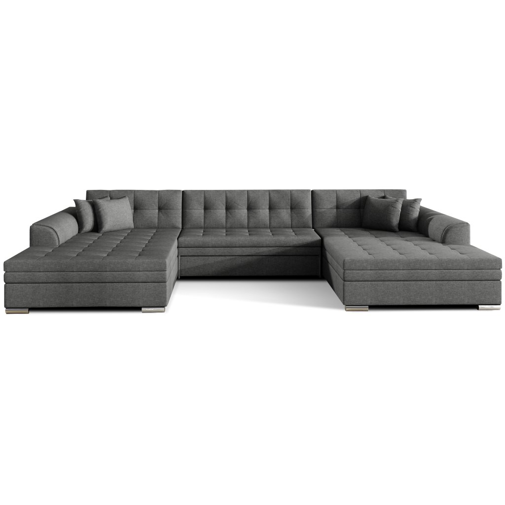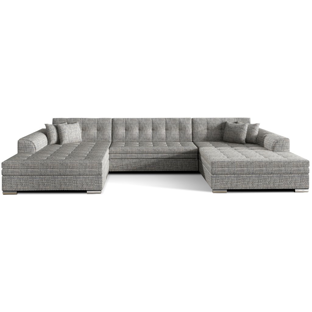 Vento je pohodlná, stylová a zároveň prostorná rohová pohovka o rozměrech 355 x 165 x 80 cm. Rohová sedací souprava Vento zaručuje odpočinek a pohodlí na nejvyšší úrovni, a to především díky vhodnému profilování opěradel a výplni sedáků pěnou T30 a vlnitou pružinou, která je odolná proti deformaci.Další výhodou rohové sedací soupravy ve tvaru U je možnost jejího rozložení na prostorné lůžko o rozměrech 305 x 126 cm. Součástí balení jsou dekorativní polštáře, které bez ohledu na zvolenou barvu rohové sedací soupravy dodají sedací soupravě ještě výraznější charakter.