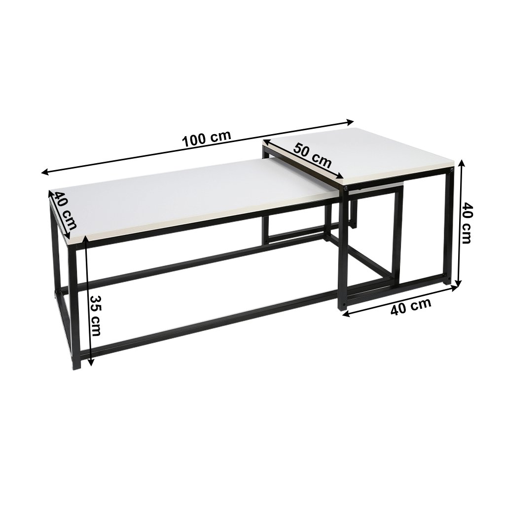 Set 2 konferenčních stolků, matná bílá / černá, KASTLER NEW TYP 2