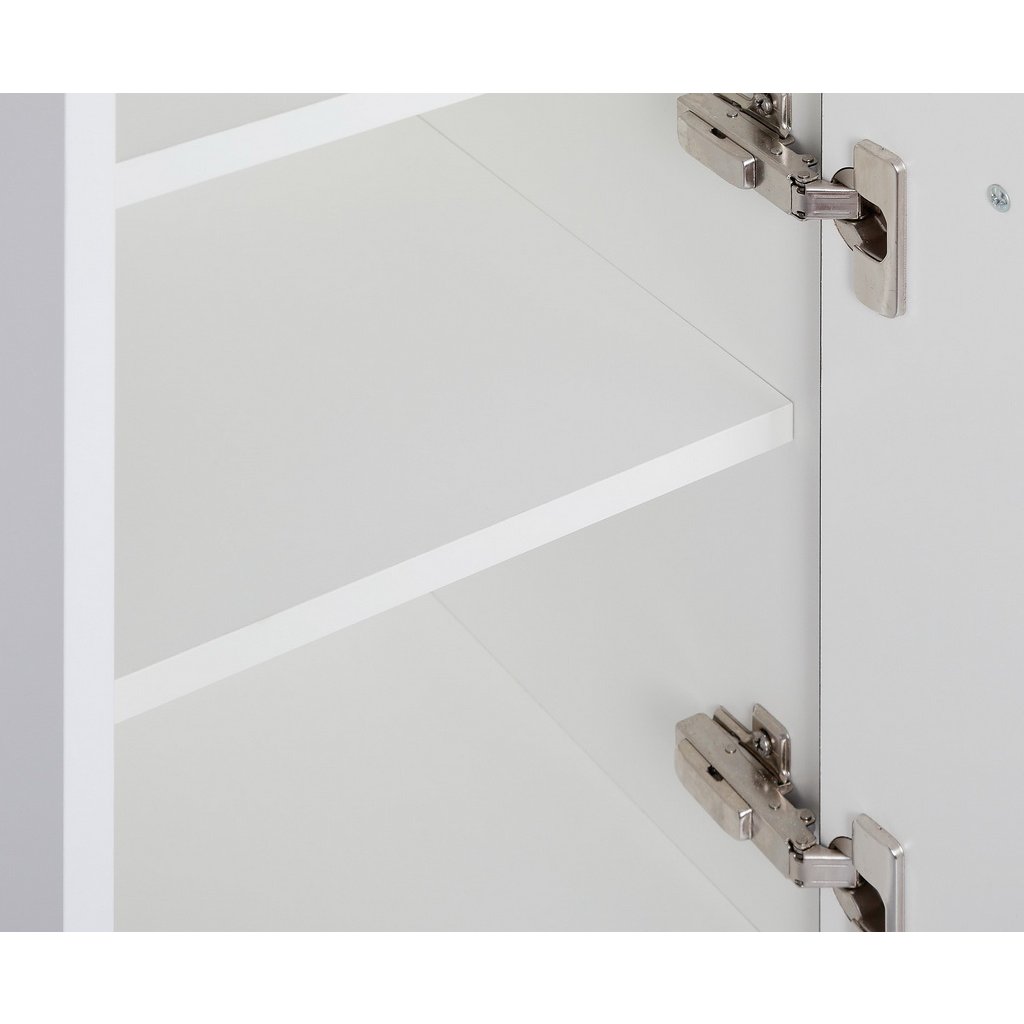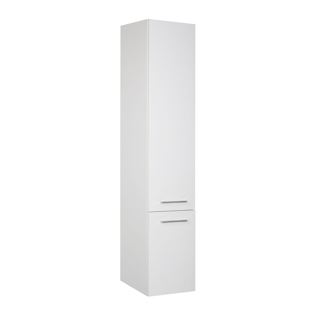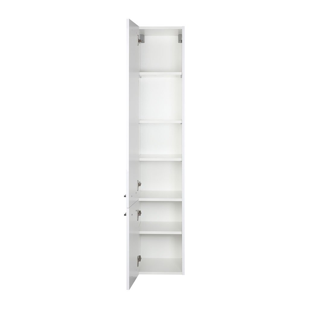 Pro uložení ručníků a kosmetiky slouží vysoký závěsný sloupek se dvěma dvířky. Vnitřní prostor je rozdělen celkem čtyřmi policemi (3 nahoře, 1 dole), které jsou výškově nastavitelné. Skříňka je velmi variabilní – směr otevírání dvířek si můžete zvolit při montáži podle dispozic své koupelny.