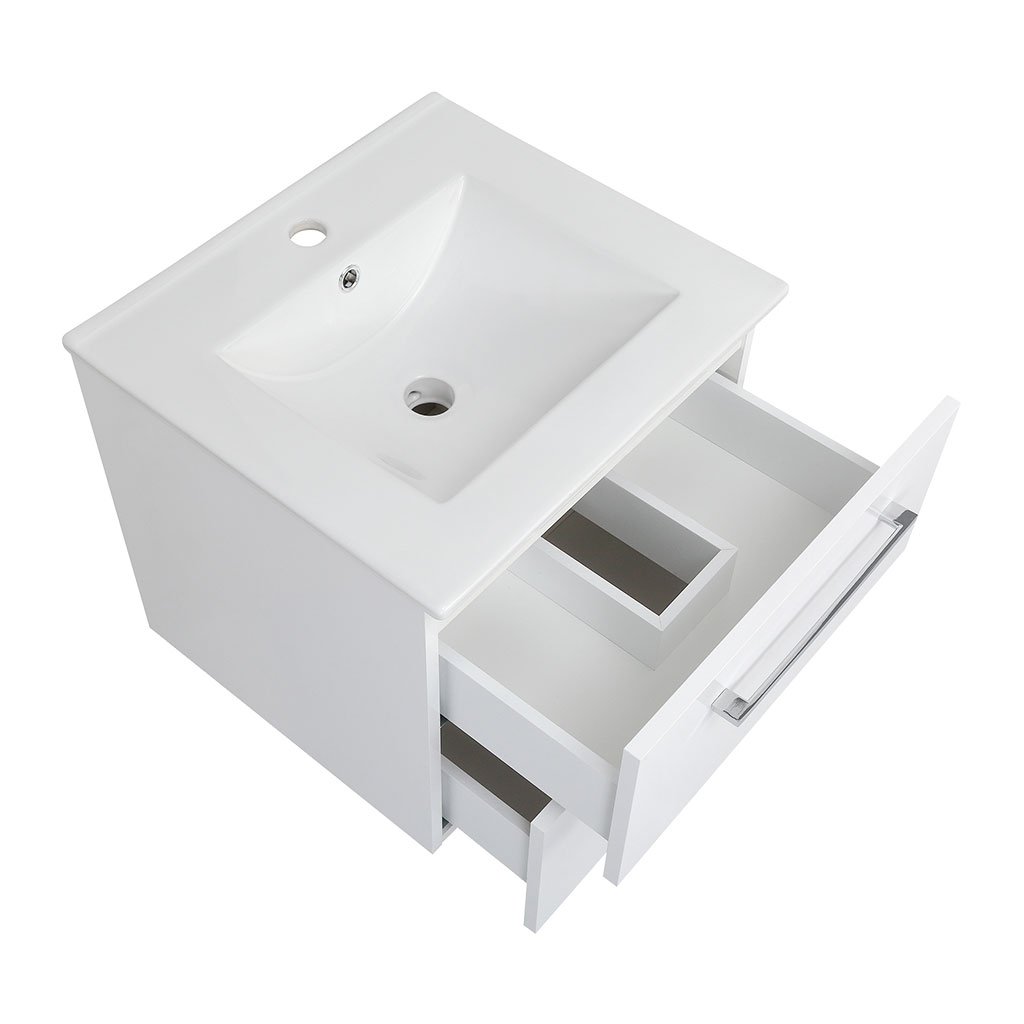 Skříňka VIRTURE W 50 s keramickým umyvadlem UM-ASU 50 s přepadem a otvorem pro montáž vodovodní baterie.
