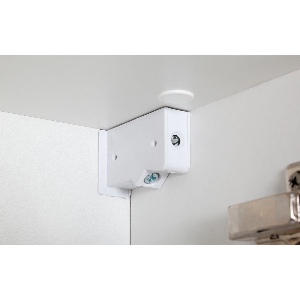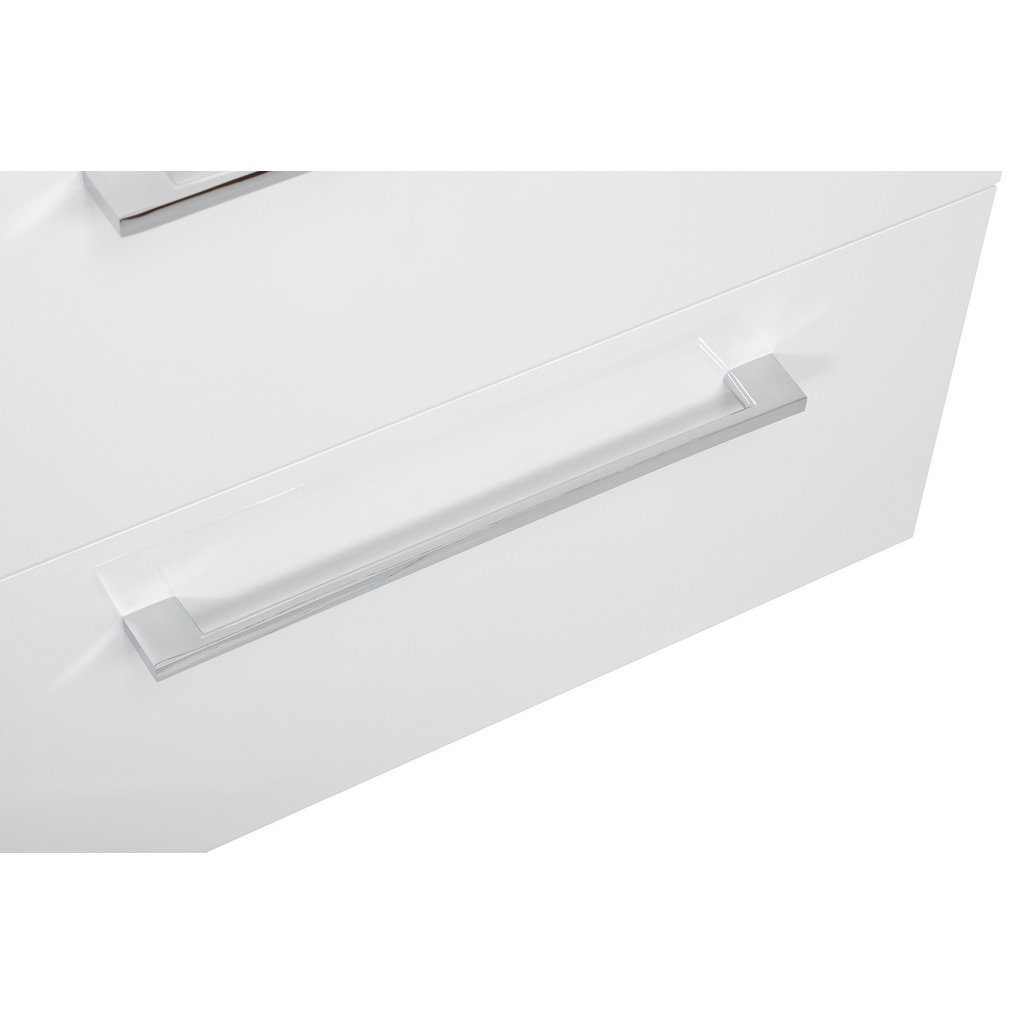 Celá sestava je vyrobena z LTD desek o tloušťce 16 mm. Korpusy i čelní plochy jsou ošetřeny bílým lakem ve vysokém lesku, který je odolný proti vlhkosti. Elegantní kovová chromovaná madla zajišťují pohodlnou manipulaci a dlouhou životnost.
