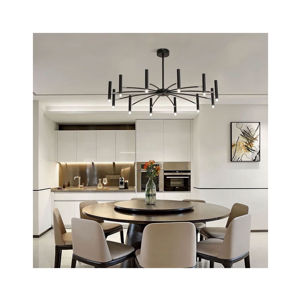 Lampa má více světelných bodů, které jsou připevněny ke kovovým ramenům ve tvaru půlkruhů. Díky tomuto řešení dokonale rozptylují světlo po celé místnosti.
