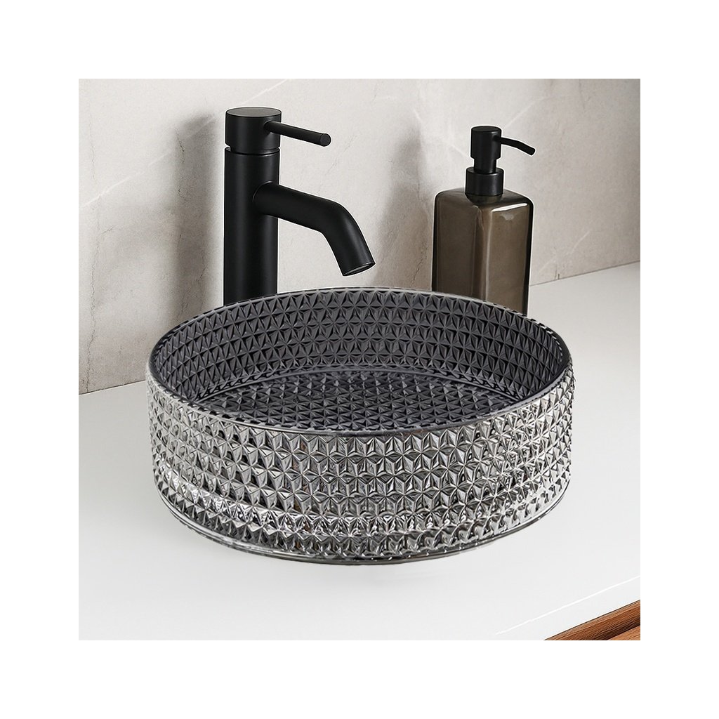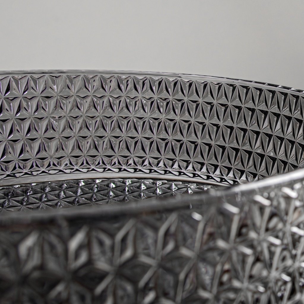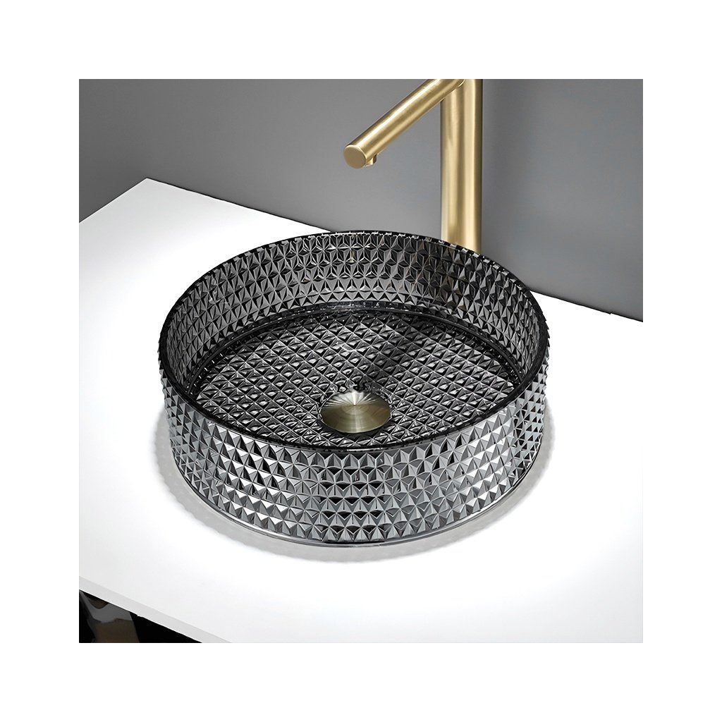 Umyvadlo na desku HYD-BRT1-BL-PL-360 36x12 cm, platina lesk z platinově lesklého skla s dekorativním diamantovým frézováním spojuje moderní design s nadčasovou elegancí. Jeho precizně zpracovaná struktura inspirovaná krystalem krásně odráží světlo a vytváří efekt hloubky a jemné hry odlesků, díky čemuž se stává výrazným, ale zároveň stále velmi subtilním prvkem interiéru.