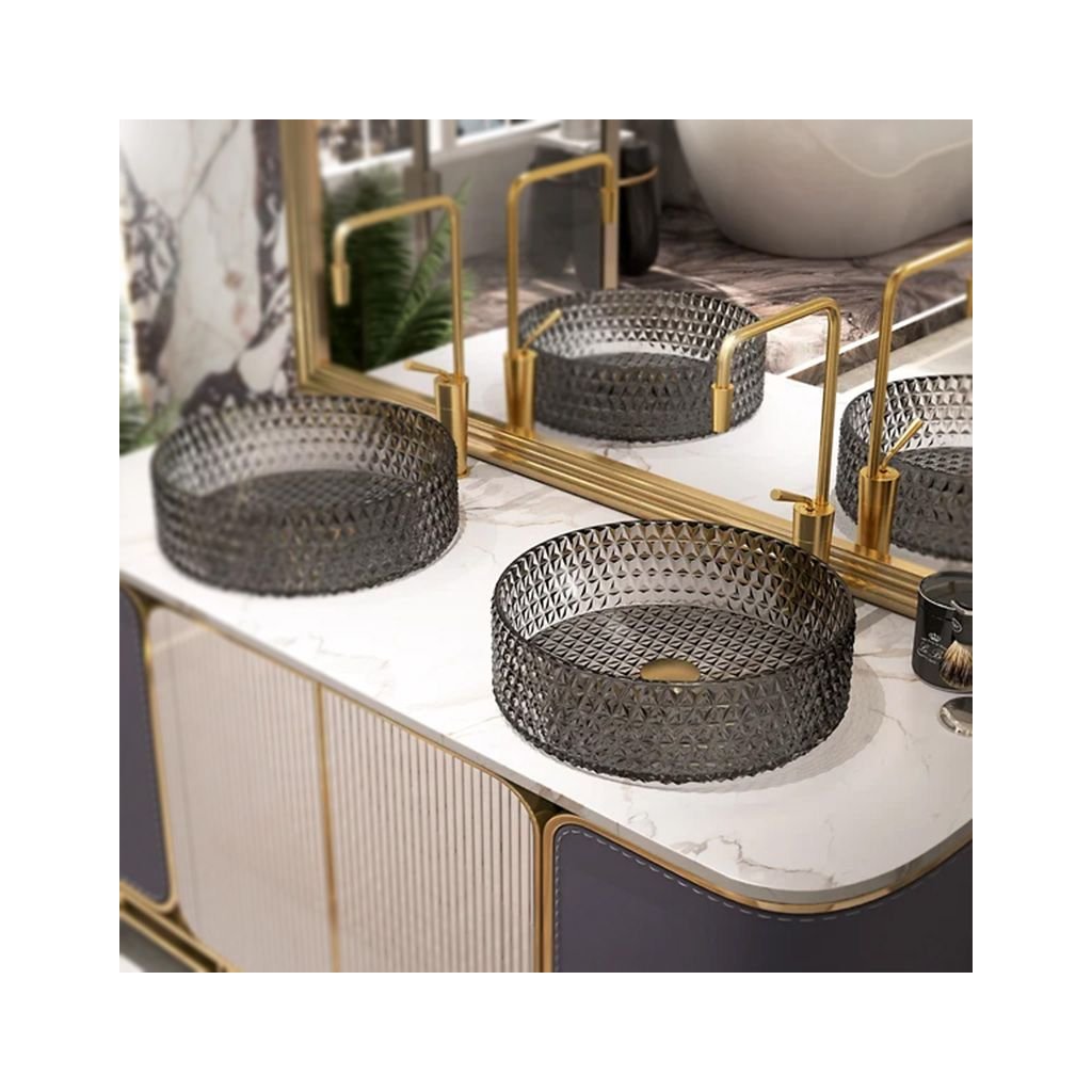Moderní křišťálové umyvadlo ze série Cristal se bude ve vaší stylové koupelně skvěle vyjímat. Je vyrobeno z vysoce kvalitního skla, vhodné k montáži na desku nebo skříňku.Zajímavý vizuální efekt podtrhuje světlo odrážející se v krystalech.