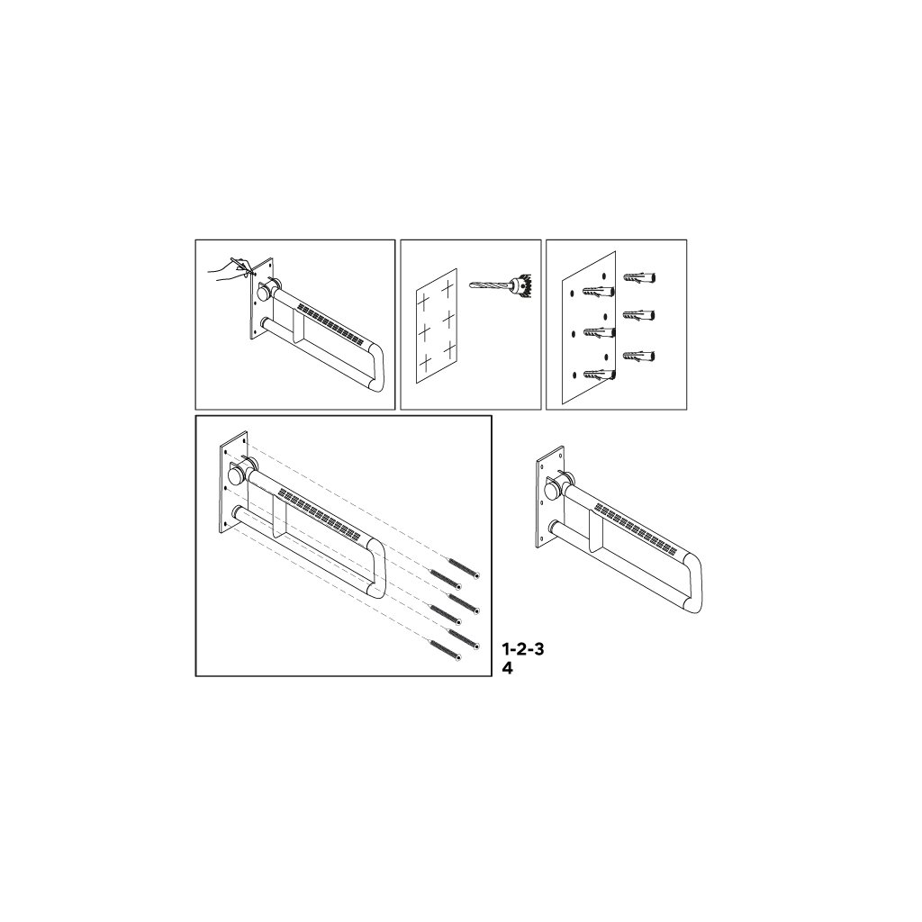 Součástí výrobku jsou šrouby a hmoždinky. Lze je použit do betonu a obkladu, který má tloušťku do 8 mm.