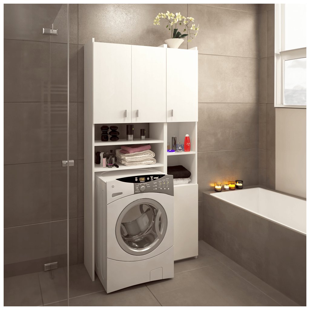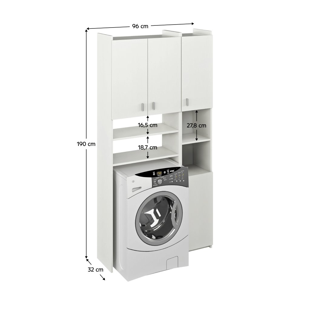 Skříňka nad pračku s regálem, bílá, MIRALI