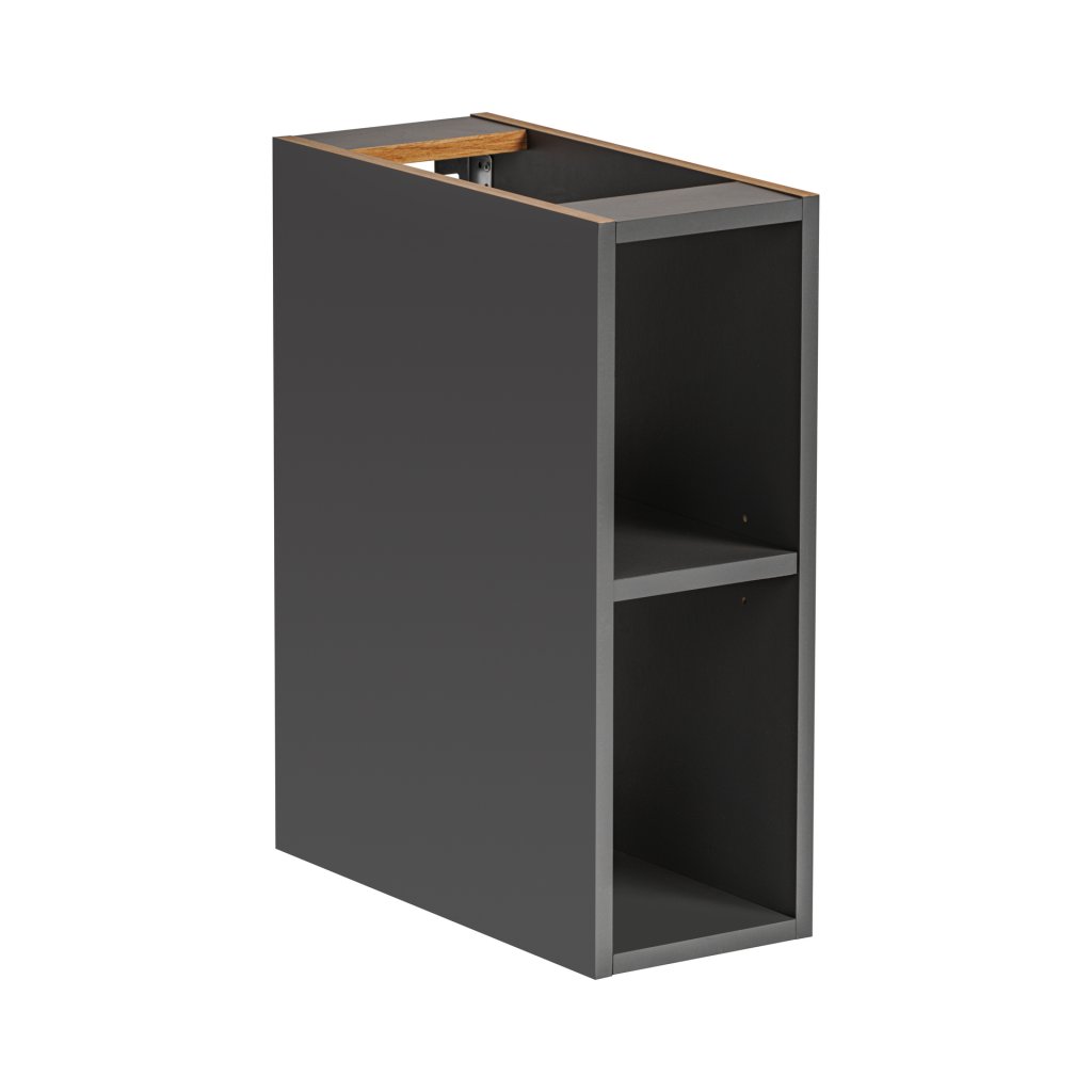 Skříňka pod desku Monako Grey 20 cm je velmi úzký a praktický úložný modul s otevřenou konstrukcí, který skvěle doplňuje širší skříňky pod umyvadlo z kolekce Monako. Je ideální pro vystavení dekorací nebo pro snadno přístupné ukládání ručníků či toaletních potřeb. Celá skříňka je provedena v jednotné, elegantní šedé barvě.