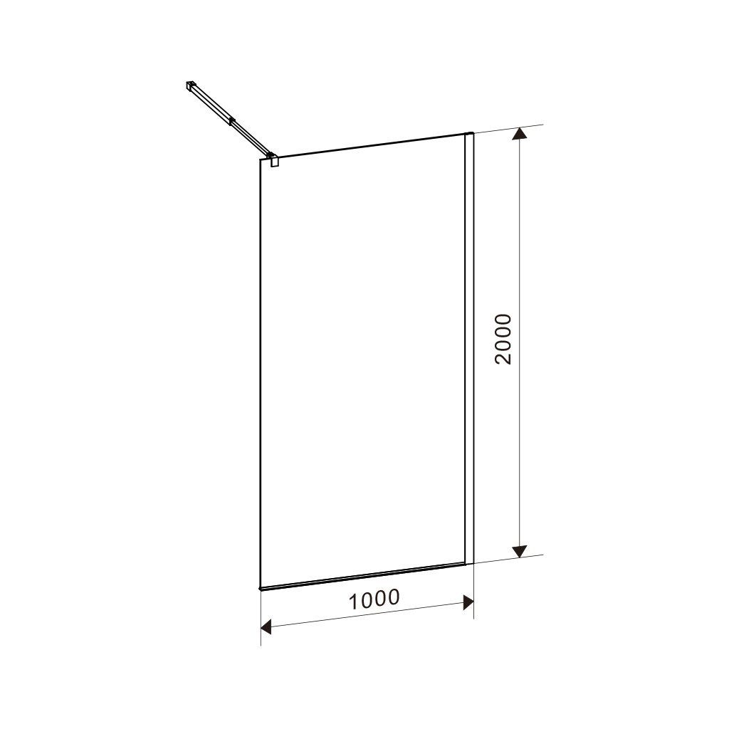 Sprchová zástěna Walk-in HYD-WI07 100 černá - bez vaničky