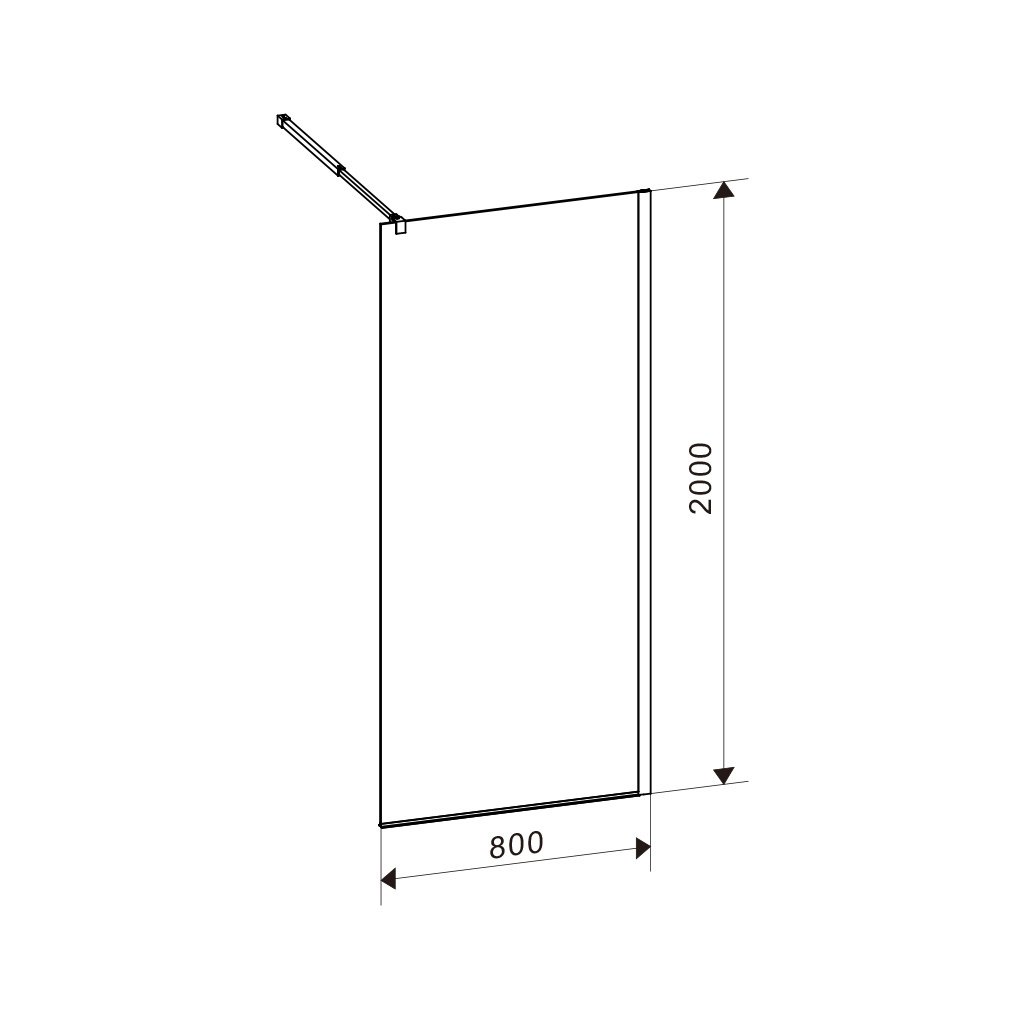 Sprchová zástěna Walk-in HYD-WI07 80 černá - bez vaničky