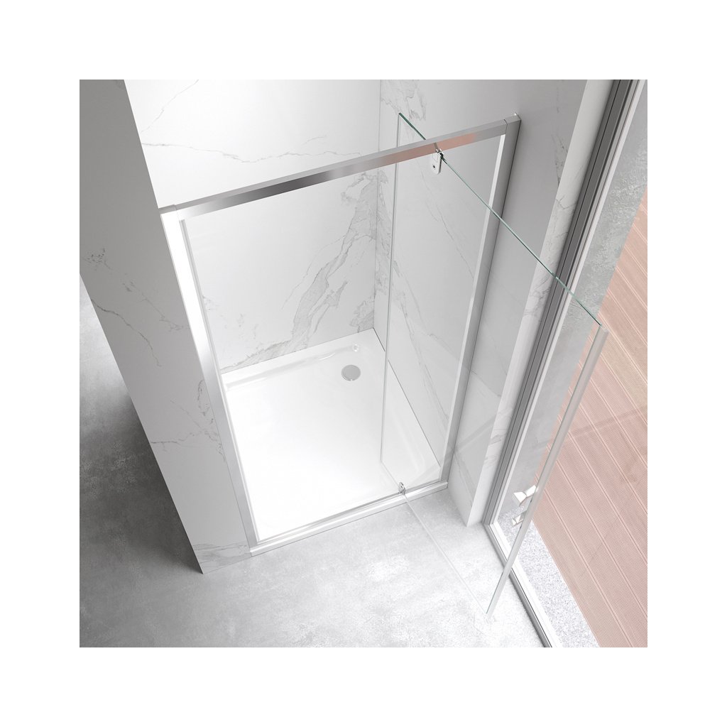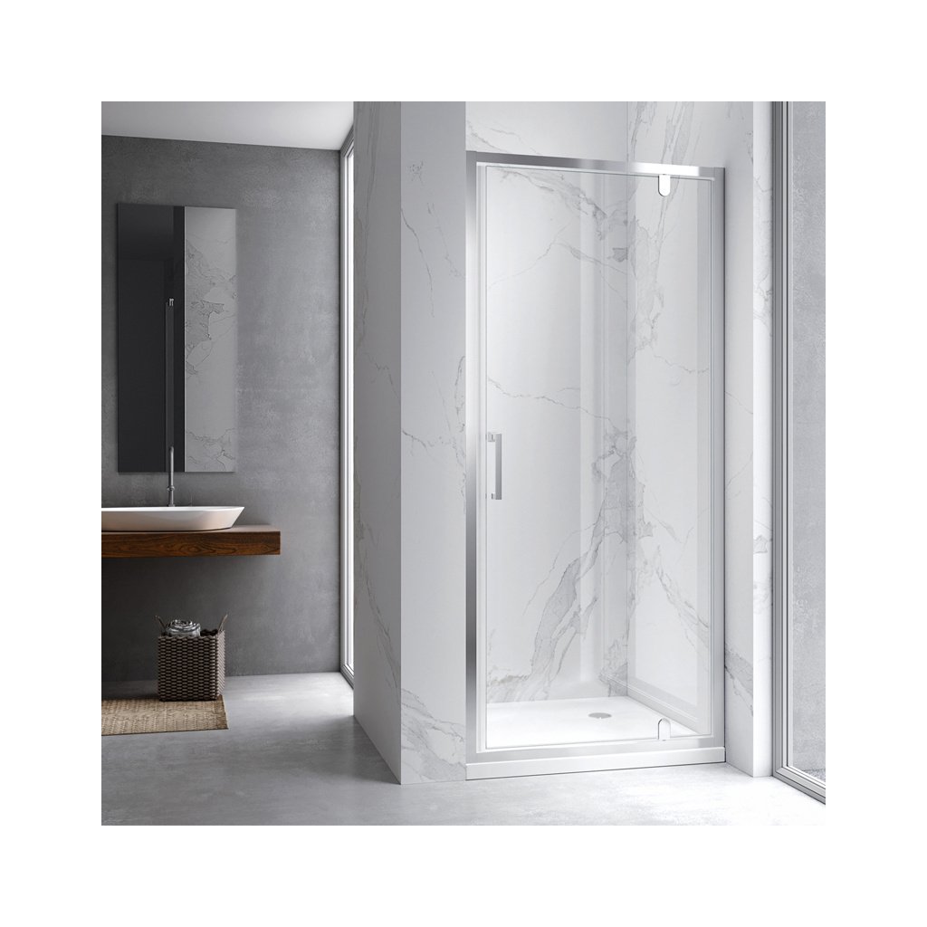 Sprchové dveře HYD-DN18 pro instalaci do nikySprchové dveře jsou ideální pro ty, kteří hledají jednoduchá a esteticky příjemná řešení pro moderní koupelnu. Jsou vyrobeny z tvrzeného skla a zasazeny do hliníkového profilu, což zaručuje odolnost a strukturální stabilitu. Čiré sklo, robustní panty a pohodlná rukojeť dodávají celému zařízení lehký a přehledný vzhled. Dveře se otevírají směrem ven, což zvyšuje komfort.