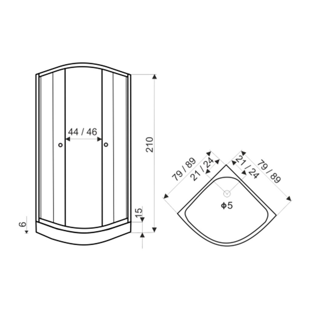 Sprchový box čtvrtkruhový NV-Cessla 80 W, 80x80 bílý