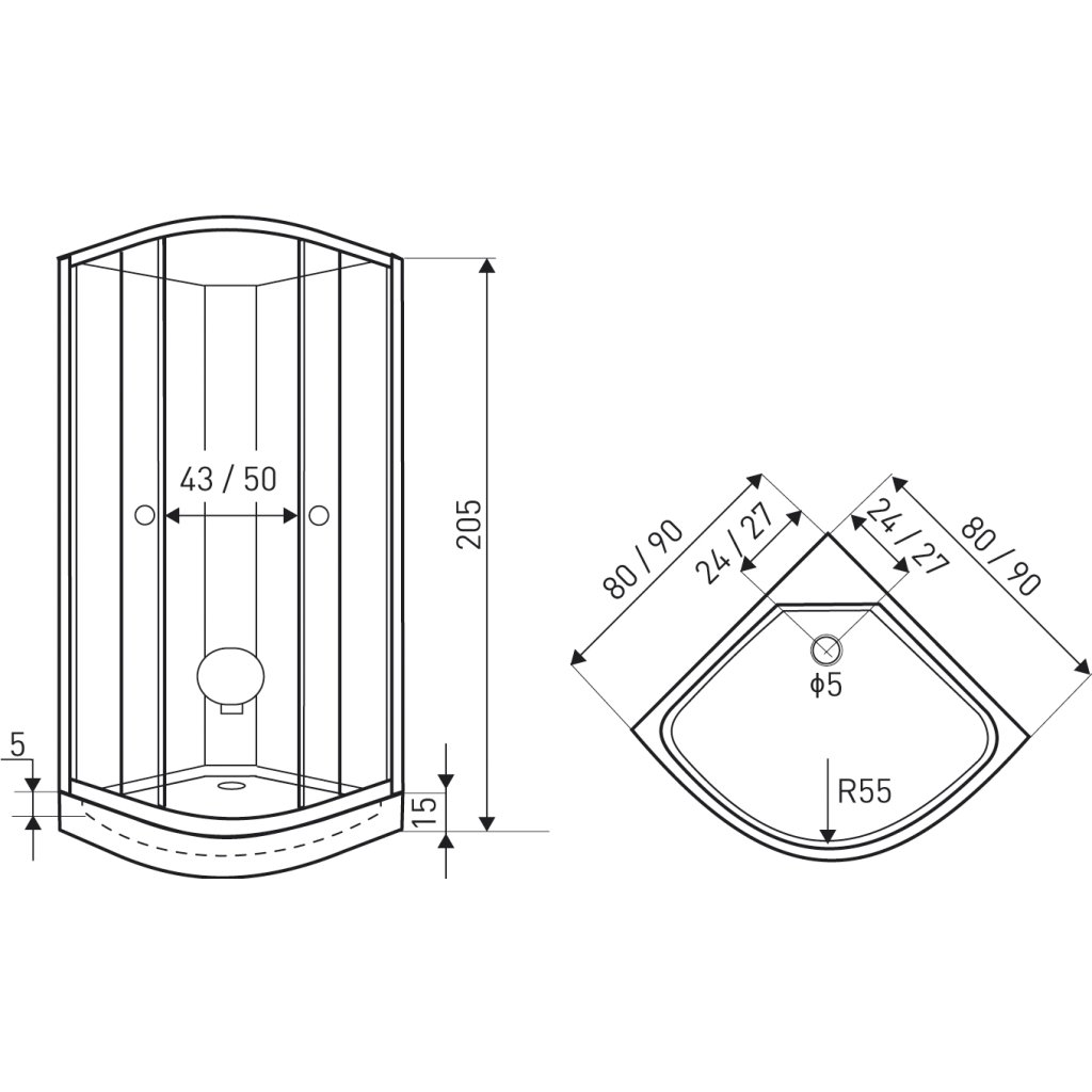 - Rozměry: 80 × 80 × 205 cm