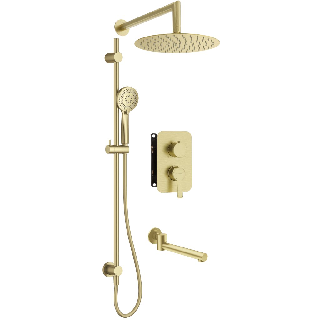 Proměňte svou koupelnu v domácí wellness s tímto exkluzivním sprchovým setem. Série Arnika, inspirovaná dánským stylem hygge, přináší do interiéru harmonii, oblé tvary a dotek sofistikovaného luxusu díky povrchové úpravě v kartáčovaném zlatě.
