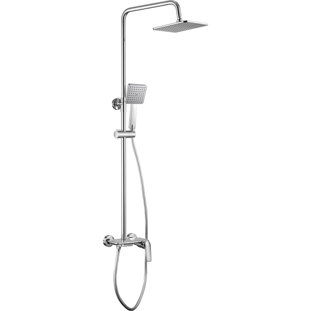 Dešťová sprcha s policí na kosmetiku Boro kombinuje jednoduchý design s praktickými prvky. Ocelová tyč zajišťuje odolnost a flexibilní PVC hadice zaručuje pohodlné používání. Horní sprchová hlavice a ruční sprcha jsou vybaveny systémem Anti-Calc, který usnadňuje čištění a snižuje usazování vodního kamene. Polička na kosmetiku umožňuje pohodlné uložení nejnutnějších produktů, díky čemuž je sada vhodná do každé koupelny. Celý komplet je vyveden v univerzálním lesklém chromu.
