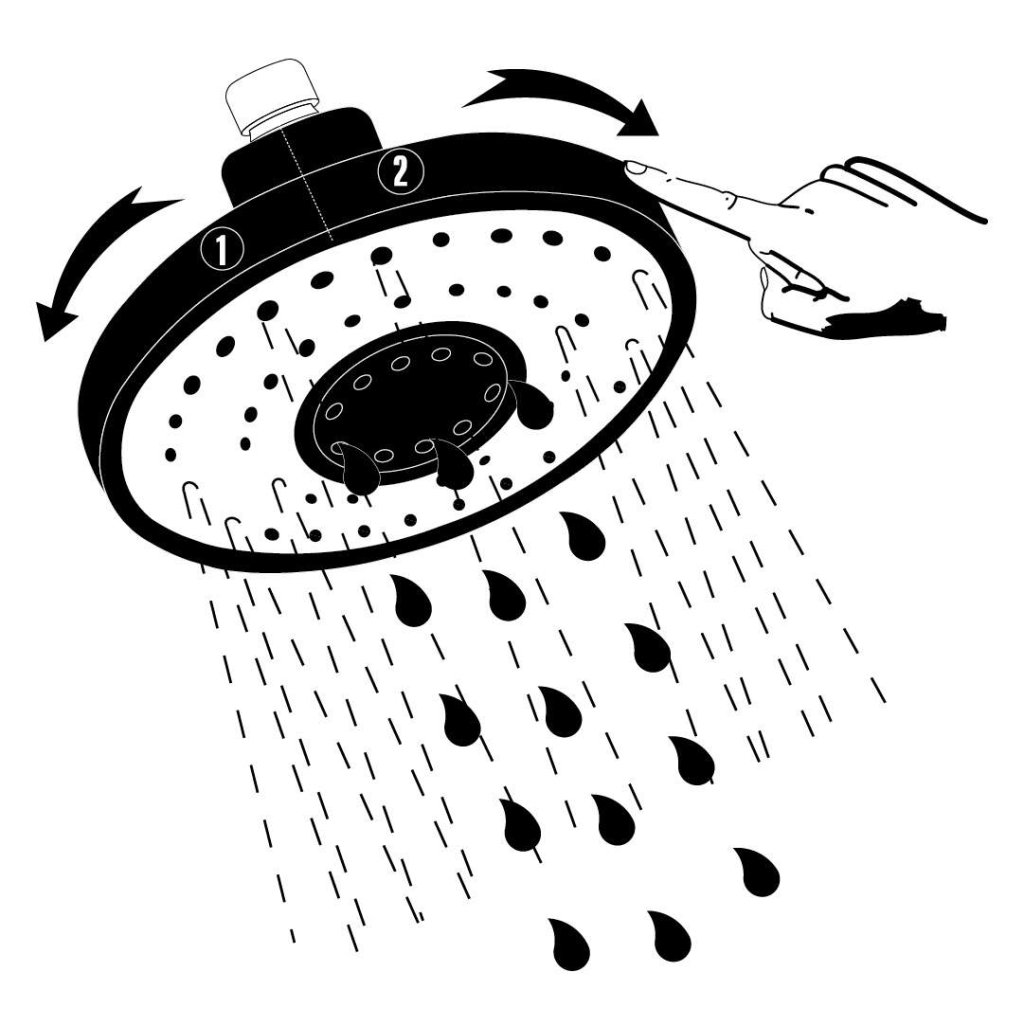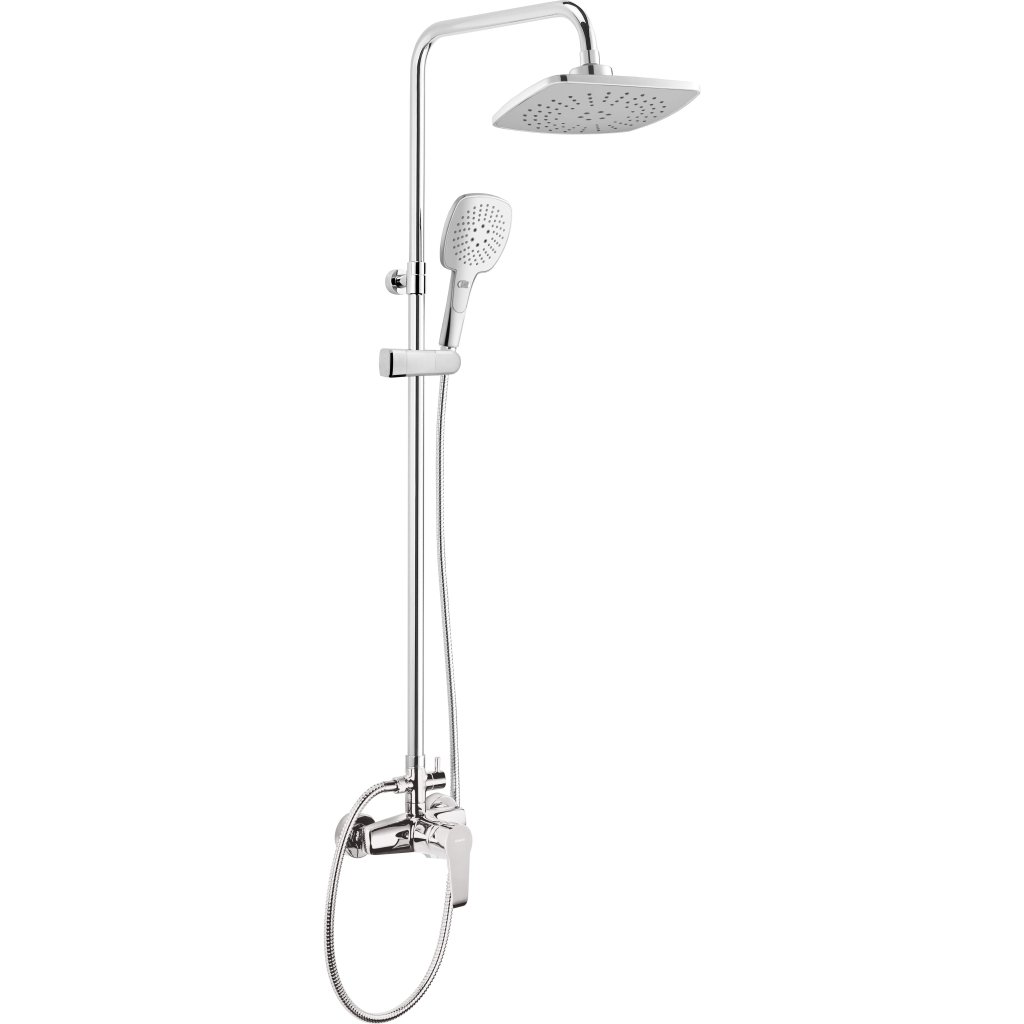 Sprchová hlavice se sprchovou baterií je produkt navržený pro dokonalý design a maximální pohodlí. Sprchová hlavice má dvě funkce: dešťovou sprchu a hydromasážní funkcí. Systém Anti-calc, který usnadňuje její udržování v čistotě. Ruční sprcha je naproti tomu vybavena dvěma smíšenými tryskami, dešťovou tryskou a hydromasážní funkcí. Mechanický přepínač funkcí umožňuje měnit průtok vody mezi hlavicí a ruční sprchou i při nízkém tlaku.Nastavitelná výška dešťové hlavice