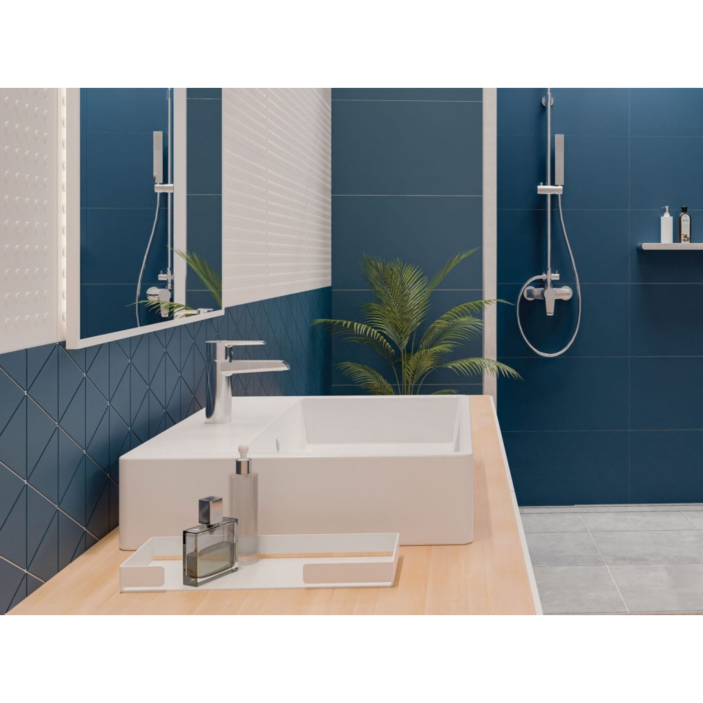 Sprchová hlavice se sprchovou baterií je produkt navržený pro dokonalý design a maximální pohodlí. Sprchová hlavice má dvě funkce: dešťovou sprchu a hydromasážní funkcí. Systém Anti-calc, který usnadňuje její udržování v čistotě. Ruční sprcha je naproti tomu vybavena dvěma smíšenými tryskami, dešťovou tryskou a hydromasážní funkcí. Mechanický přepínač funkcí umožňuje měnit průtok vody mezi hlavicí a ruční sprchou i při nízkém tlaku.Nastavitelná výška dešťové hlavice