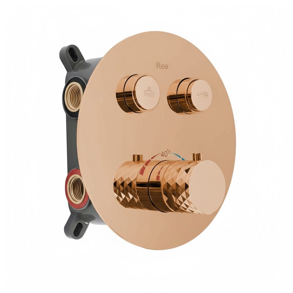Sprchový komplet REA LUNGO DIAMOND + BOX s termostatickou podomítkovou baterií, měď