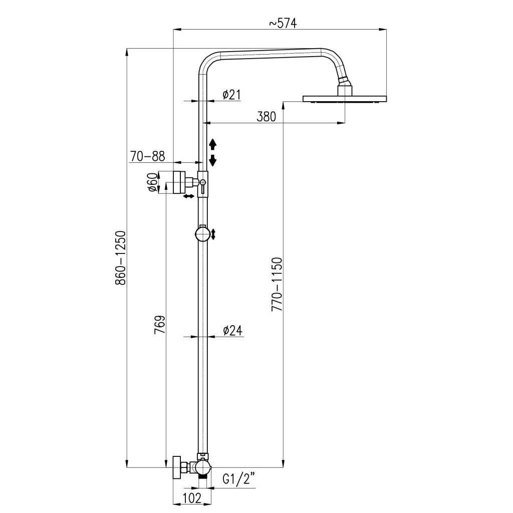 Vodovodní baterie sprchová TERMOSTATICKÁ s hlavovou a ruční sprchou a teleskopickou tyčí se skládá z: