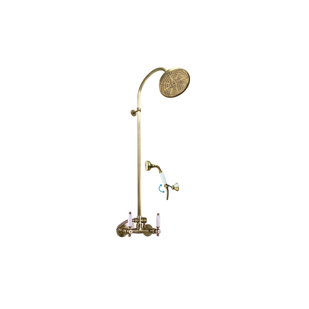 Vodovodní baterie sprchová MORAVA STARÁ MOSAZ s hlavovou a ruční sprchou se skládá z: