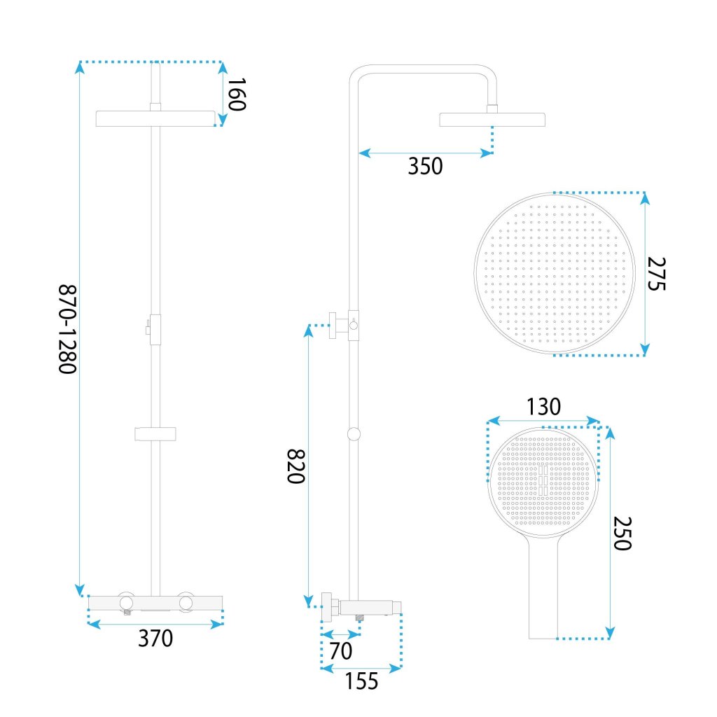 - Výška: Nastavitelná tyč (870–1280 mm) pro přizpůsobení výšce stropu i uživatelů.