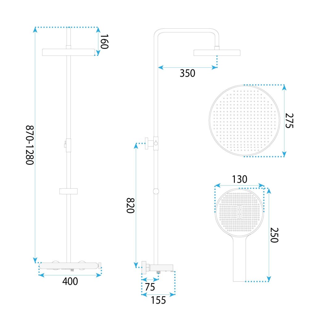 Tělo baterie je vyrobeno z kvalitní mosazi, což zajišťuje vysokou stabilitu a životnost. Sprchový set je vybaven tyčí s nastavitelnou výškou (870–1280 mm), díky čemuž snadno přizpůsobíte polohu hlavové sprchy výšce uživatelů i dispozicím vaší koupelny.