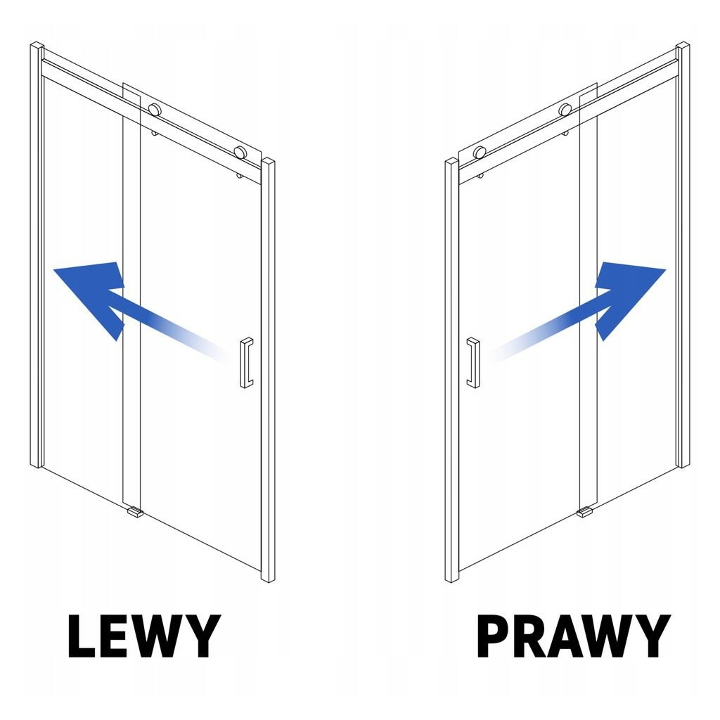 Levá varianta = Pevný díl na levé straně, dveře se otevírají posunem na levou stranu.
