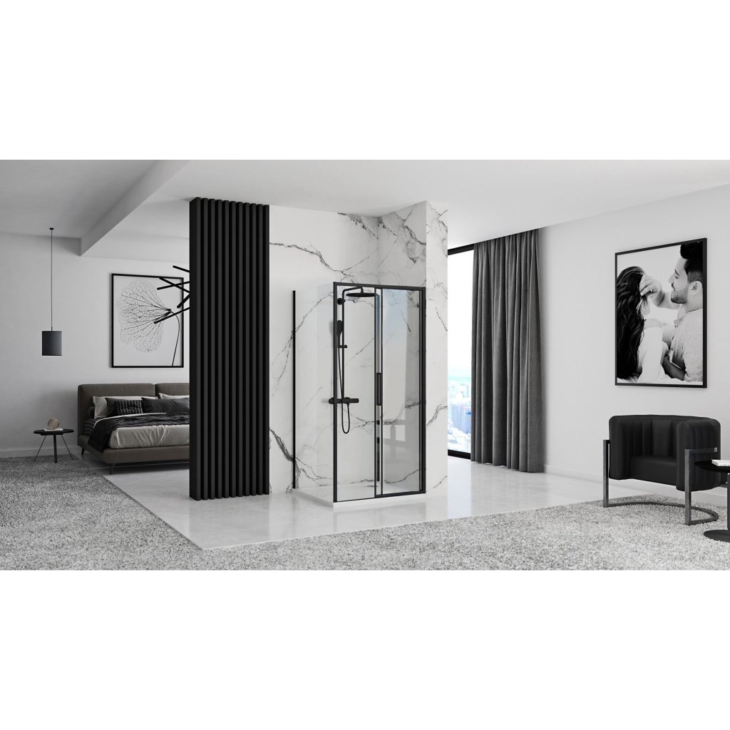 Sprchový kout REA RAPID SLIDE 140/dveře x 100/zástěna cm, černý/transparent - bez vaničky