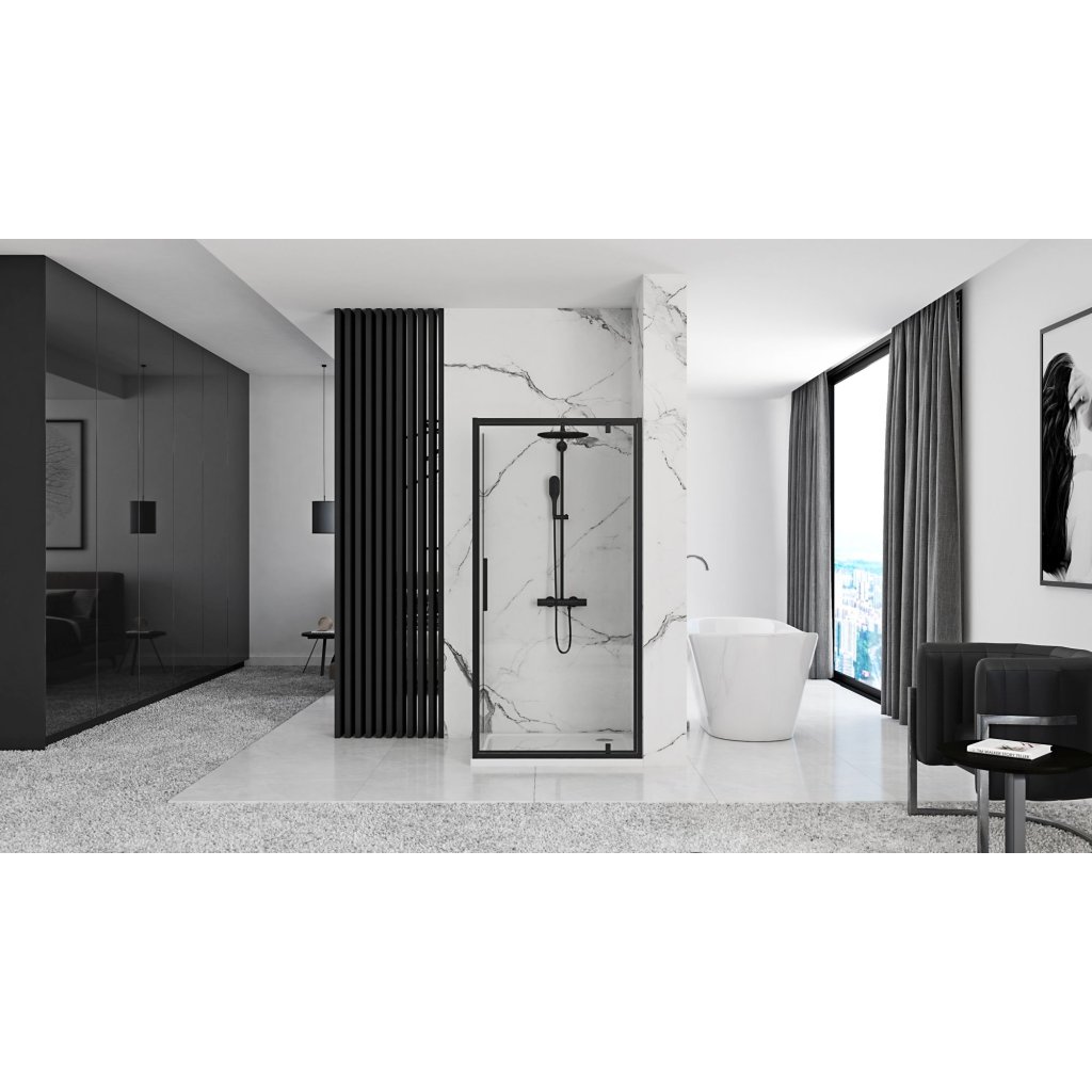 Sprchový kout REA RAPID SWING 90/dveře x 100/zástěna cm, černý/transparent - bez vaničky
